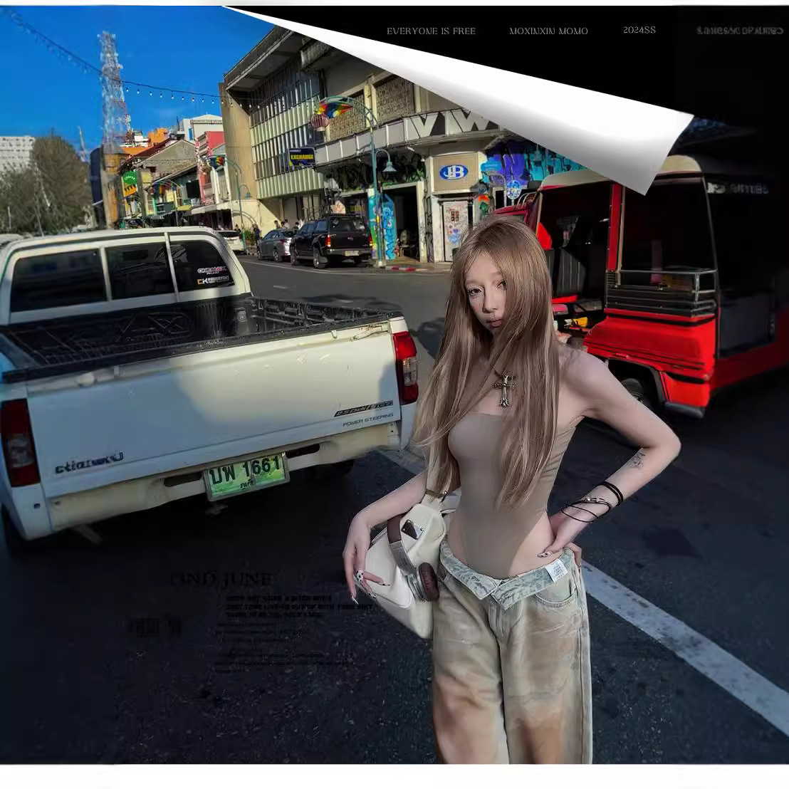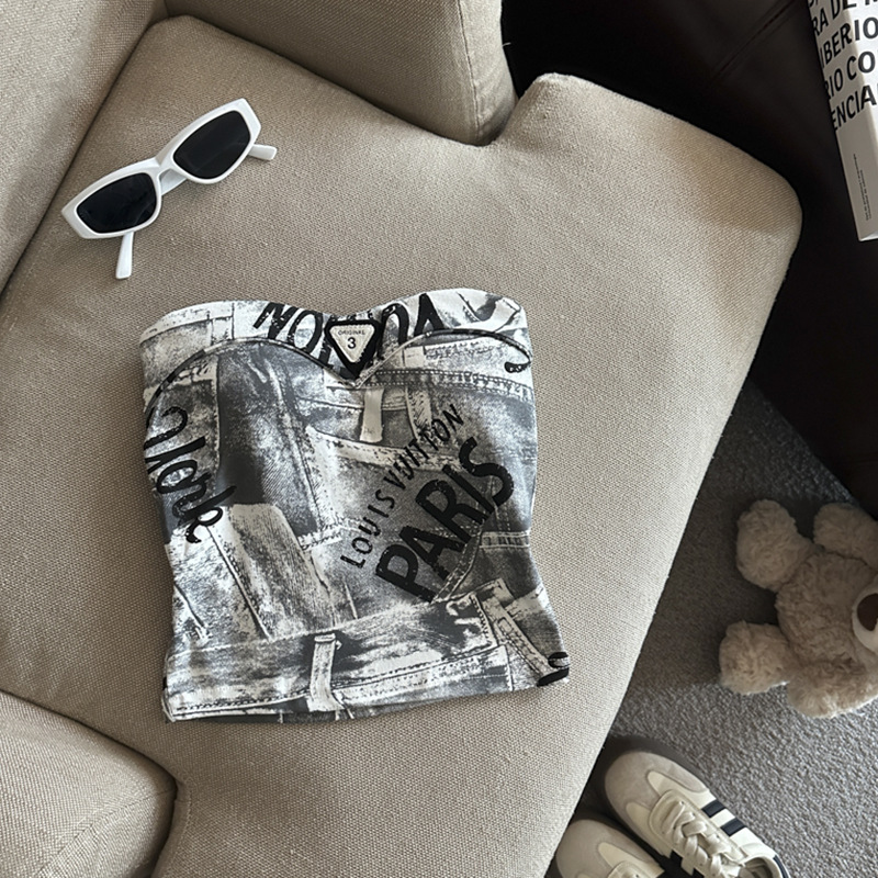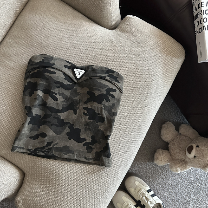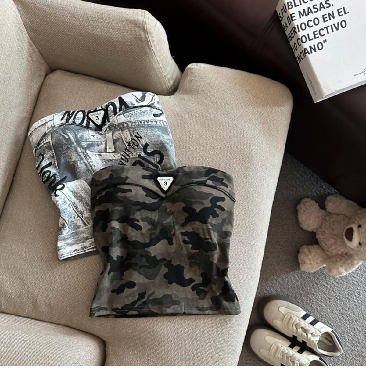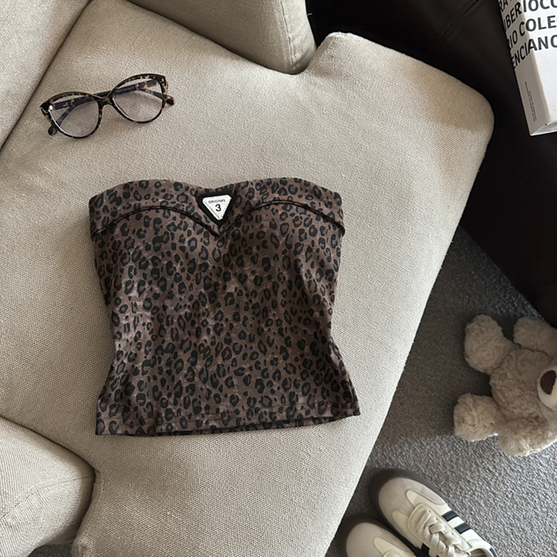 感显瘦复古设计扎染新款抹胸辣妹修身小众豹纹季背心上衣女夏美式