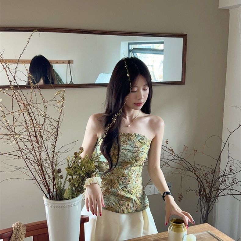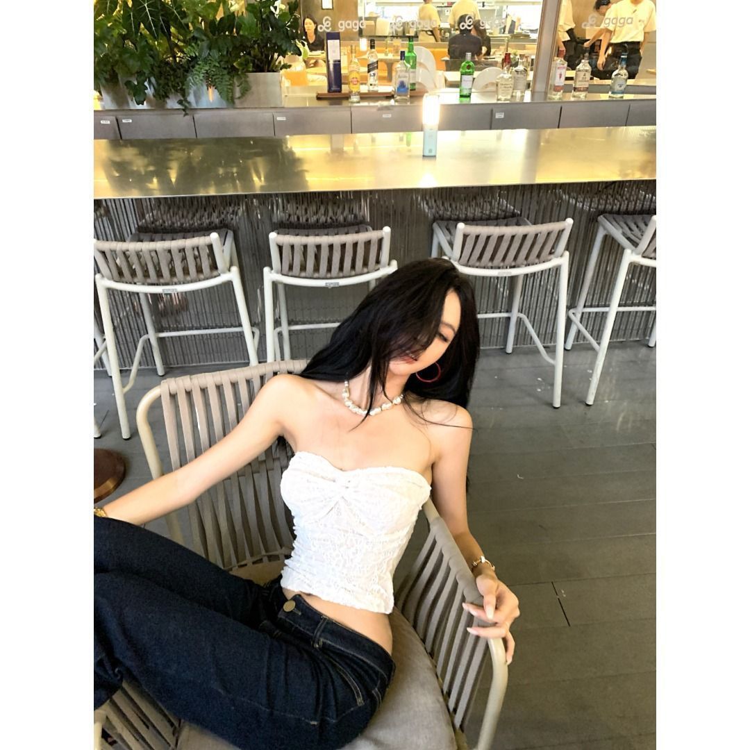 スリムフレンチデザイン春夏ニッチ胸巻きストラップレス2025バックレス新作レースアップベストレディースチューブトップ