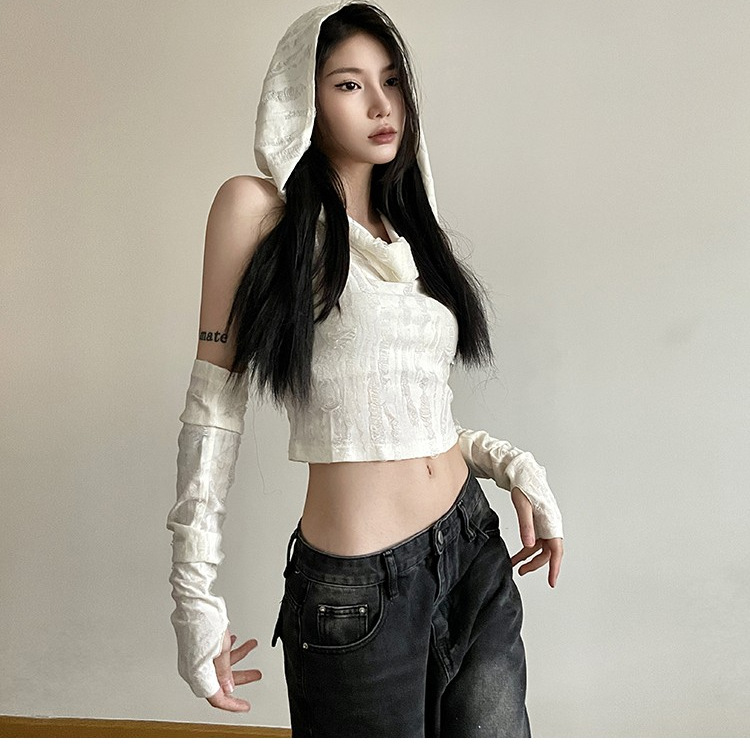 セクシーな甘辛いサイドバンドの中にストラップをつけたギャルが踊るショートtシャツの上着の女性のデザイン感が独特です。