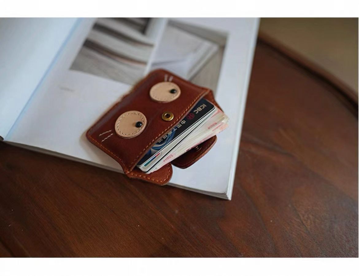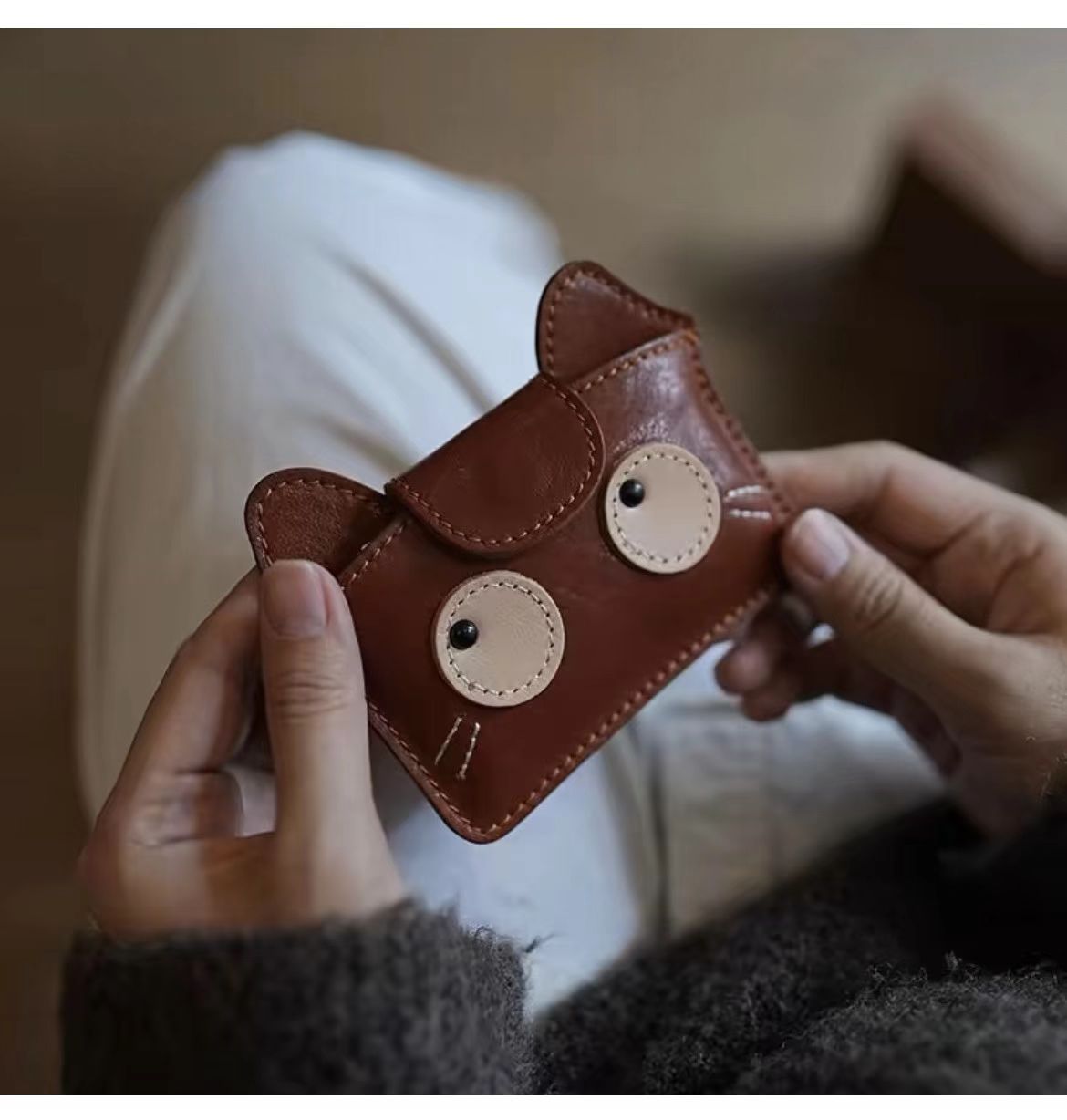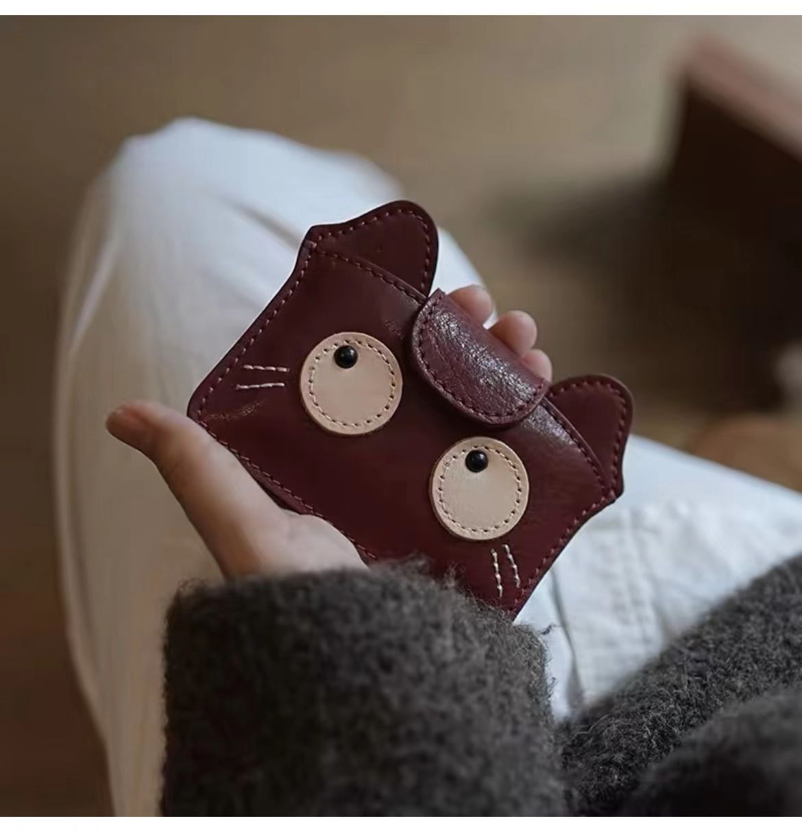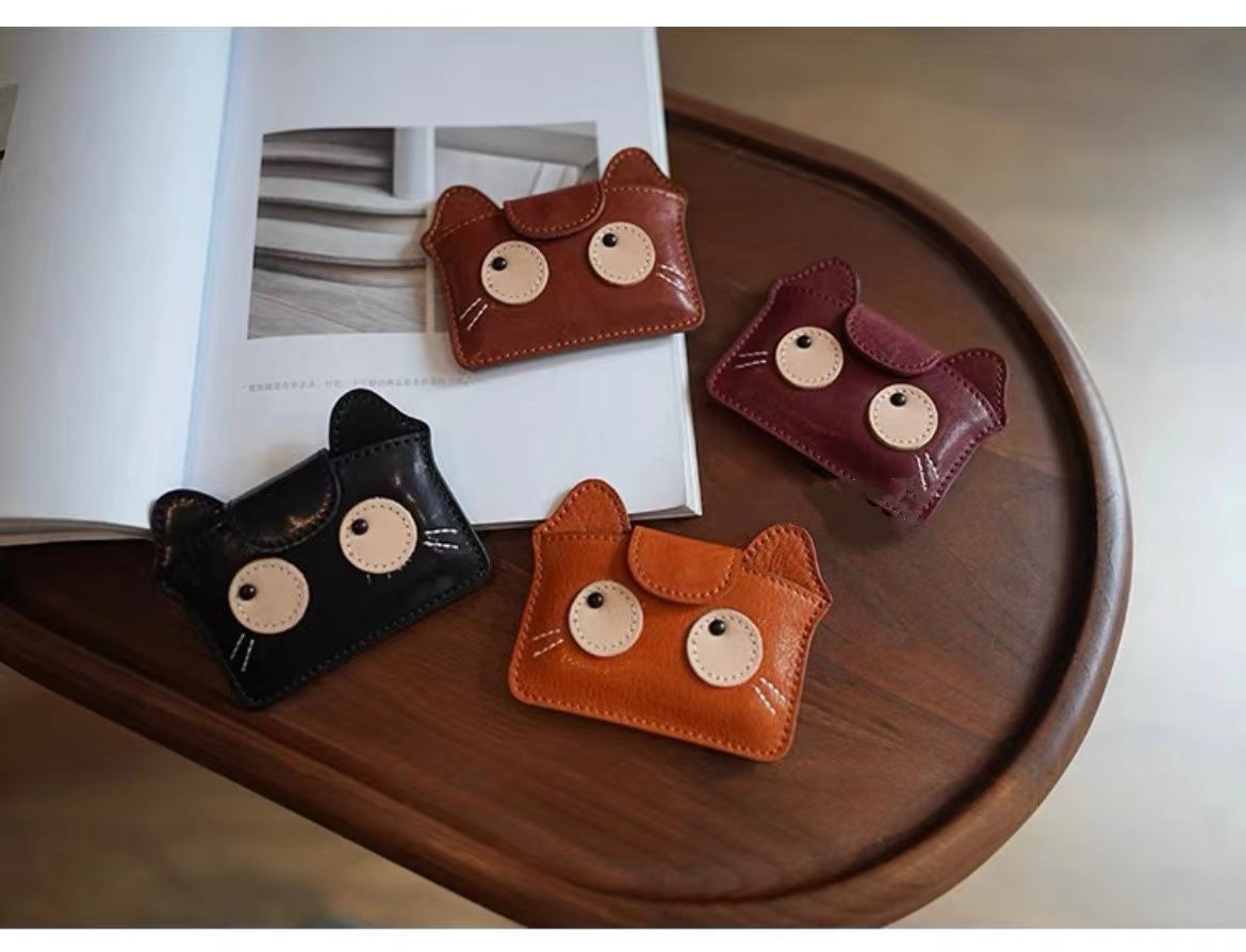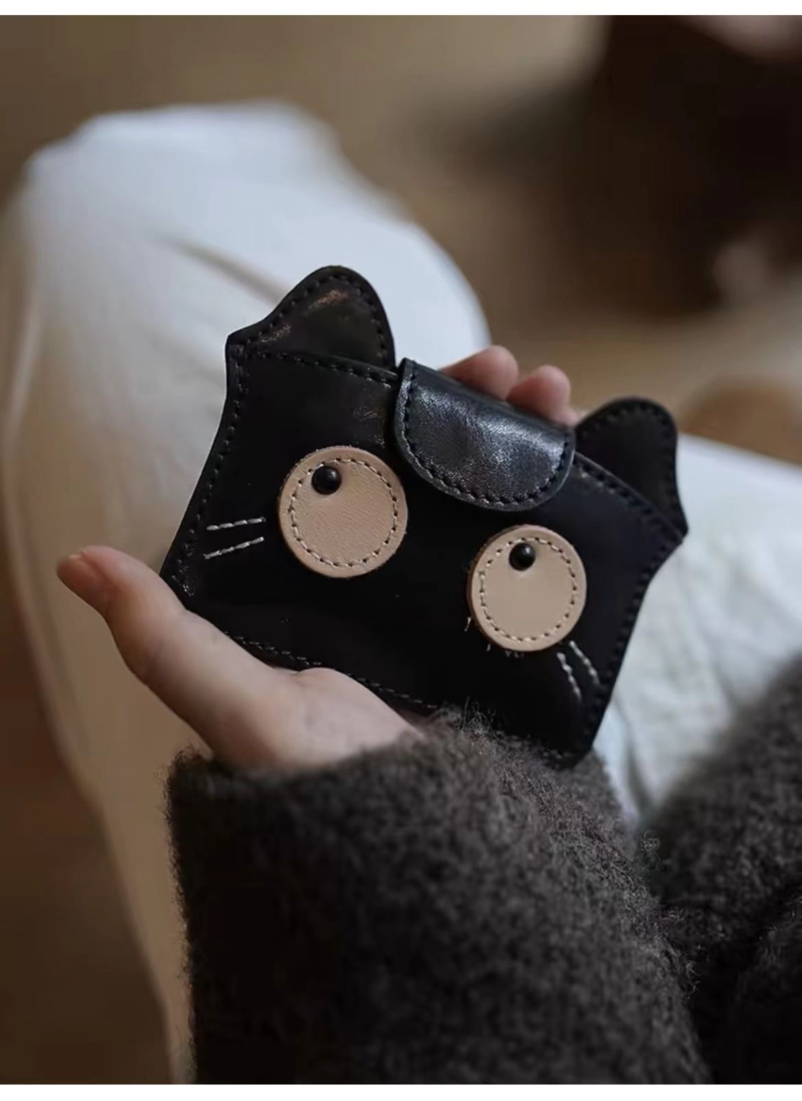 新款质感复古卡通猫咪卡包小巧轻薄大容量真软皮卡夹银行卡零钱包