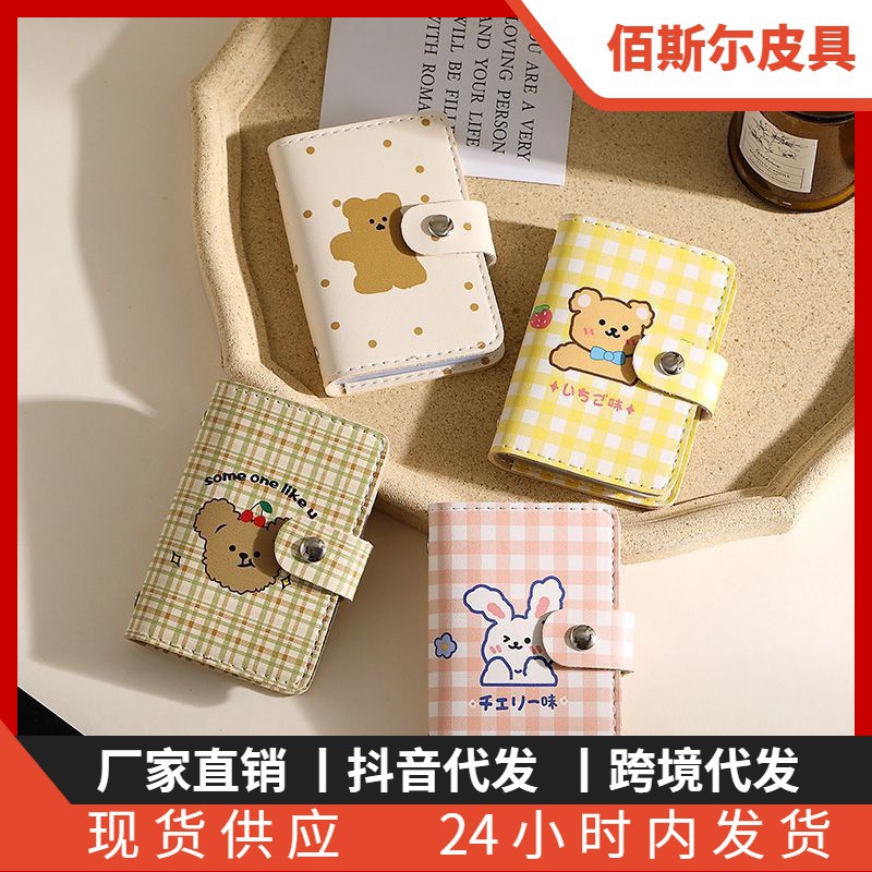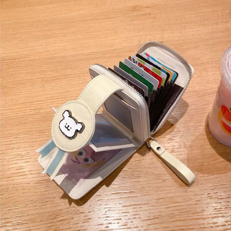 かわいい波点熊漫画カードバッグ女性個性小大衆大容量多カードビット超薄型小型防消磁気カードジャケット
