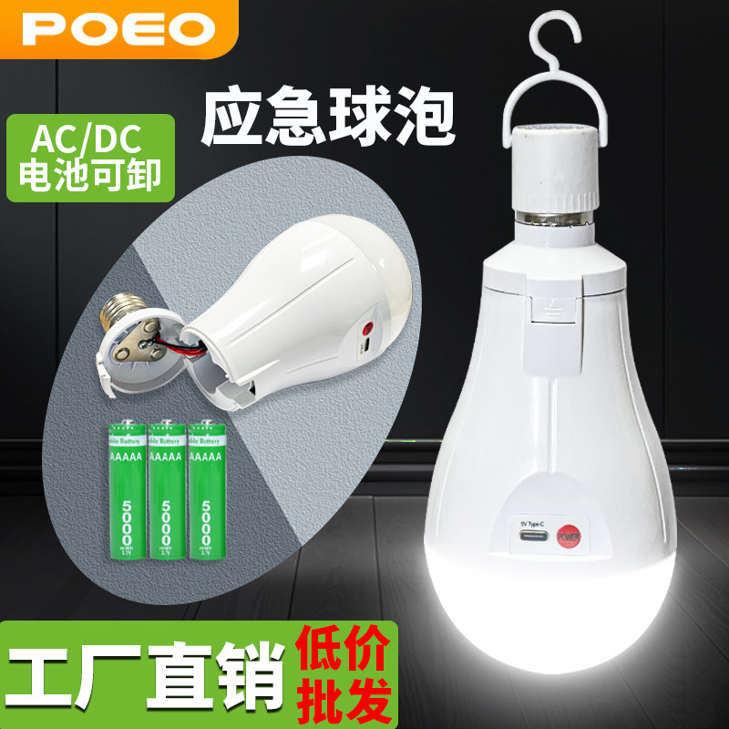 TypeC 充電式 LED 電球デュアルバッテリー停電緊急 USB 屋外ナイトマーケットの屋台キャンプランプ超高輝度照明