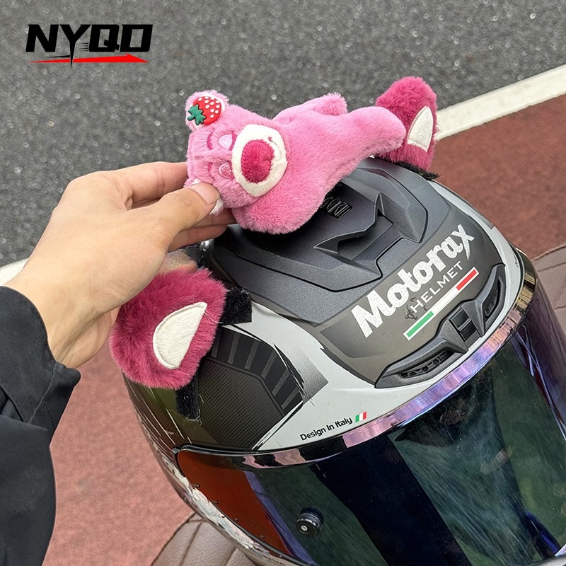 头盔装饰小熊草莓熊耳朵玫红色电动车头盔滑雪盔通用快拆耳朵配饰