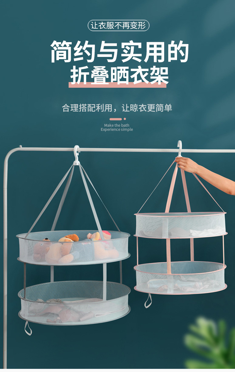 CH物干しかご 家庭用ベランダ物干し靴下乾燥神器 平置き下着衣類ネットバッグ 多層折りたたみ式乾燥かご