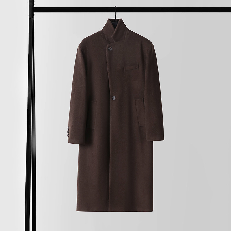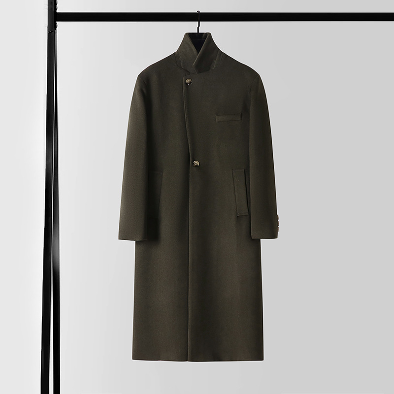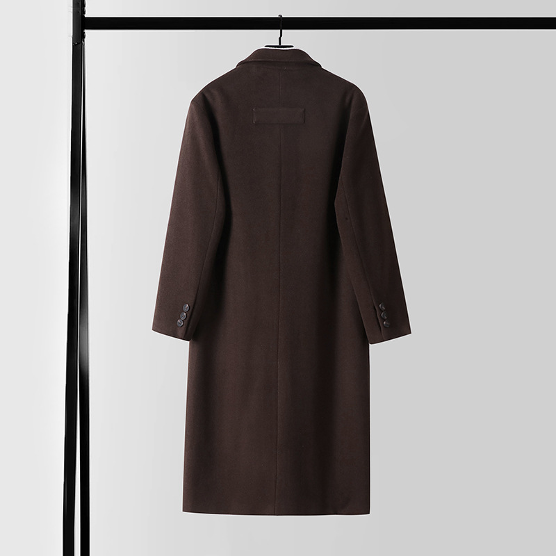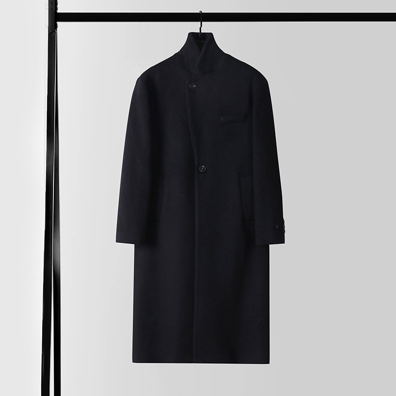 无扣设计长款羊绒大衣过膝男秋冬新款大翻领商务大码毛呢外套男