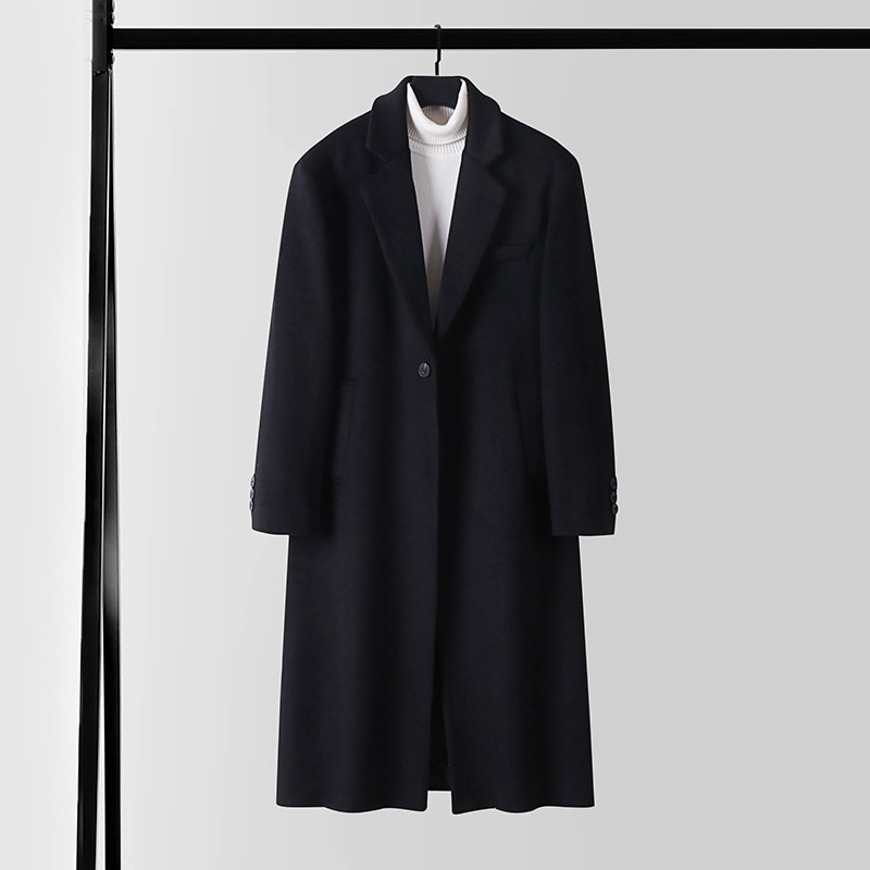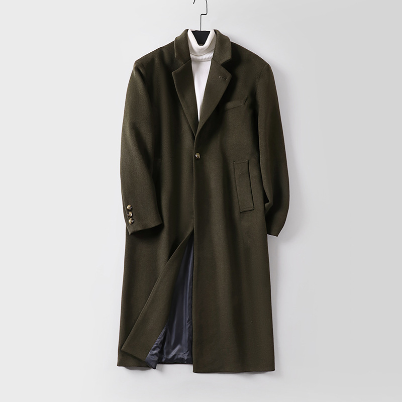 羊毛大衣男长裤过膝冬季加厚休闲大码毛呢上衣男士重磅厚款外套男