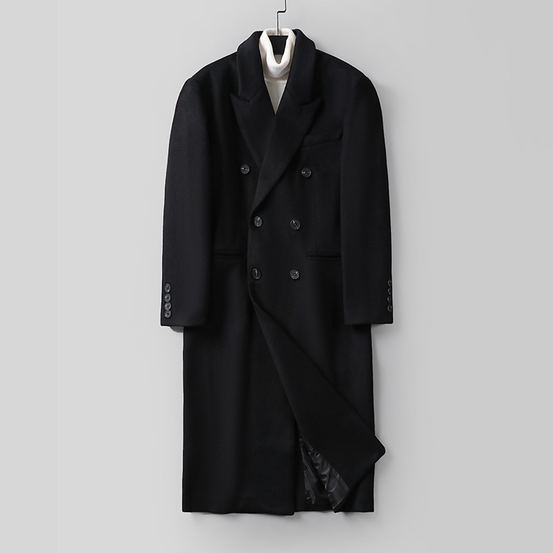 秋冬长款过膝双面羊绒大衣男双排扣韩版西装宽松羊毛呢子风衣外套