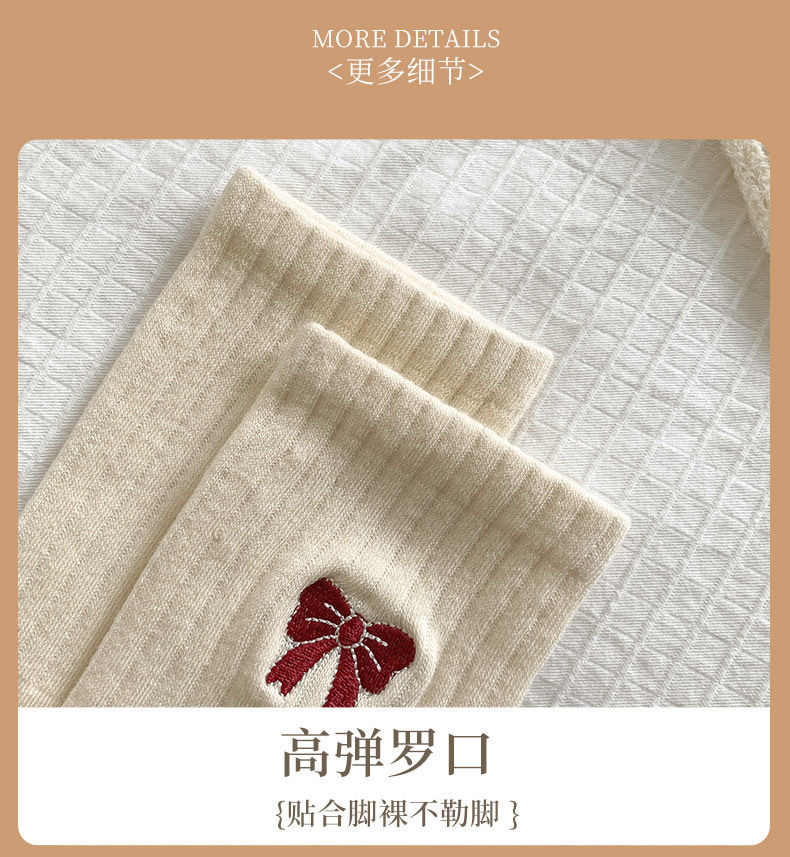 袜子女秋冬中筒袜复古费尔岛蝴蝶结小狗长筒袜潮流堆堆袜诸暨女袜