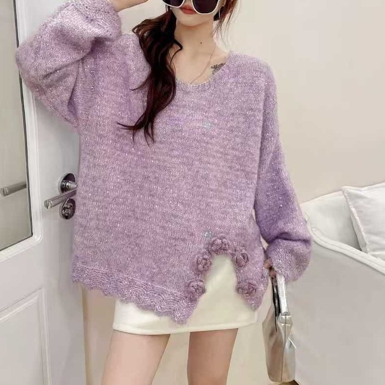 穿搭2025秋冬针织衫花朵女软糯毛衣今年流行针织上衣立体花朵长袖