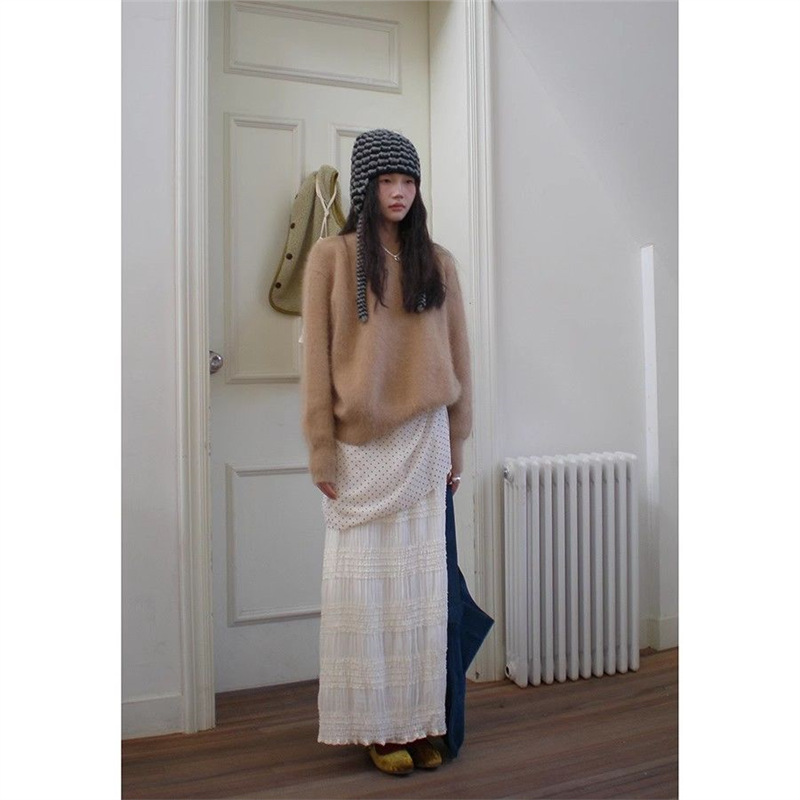 2025小衆アンドロメダの雰囲気感ロングスカート韓国系シンプルなネット糸は、ケーキを重ねてスカート4809を着ている