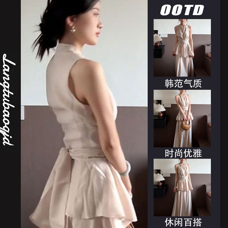 女性のためのフレンチスタイルのノースリーブホルターネックドレス2025年夏の新しいハイエンドのロングスカートの完全なセット