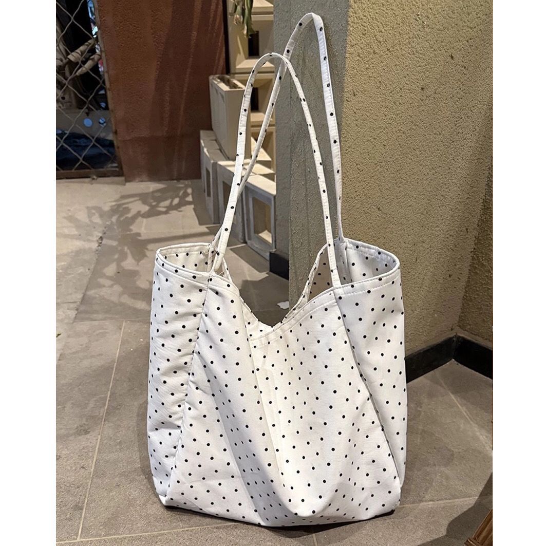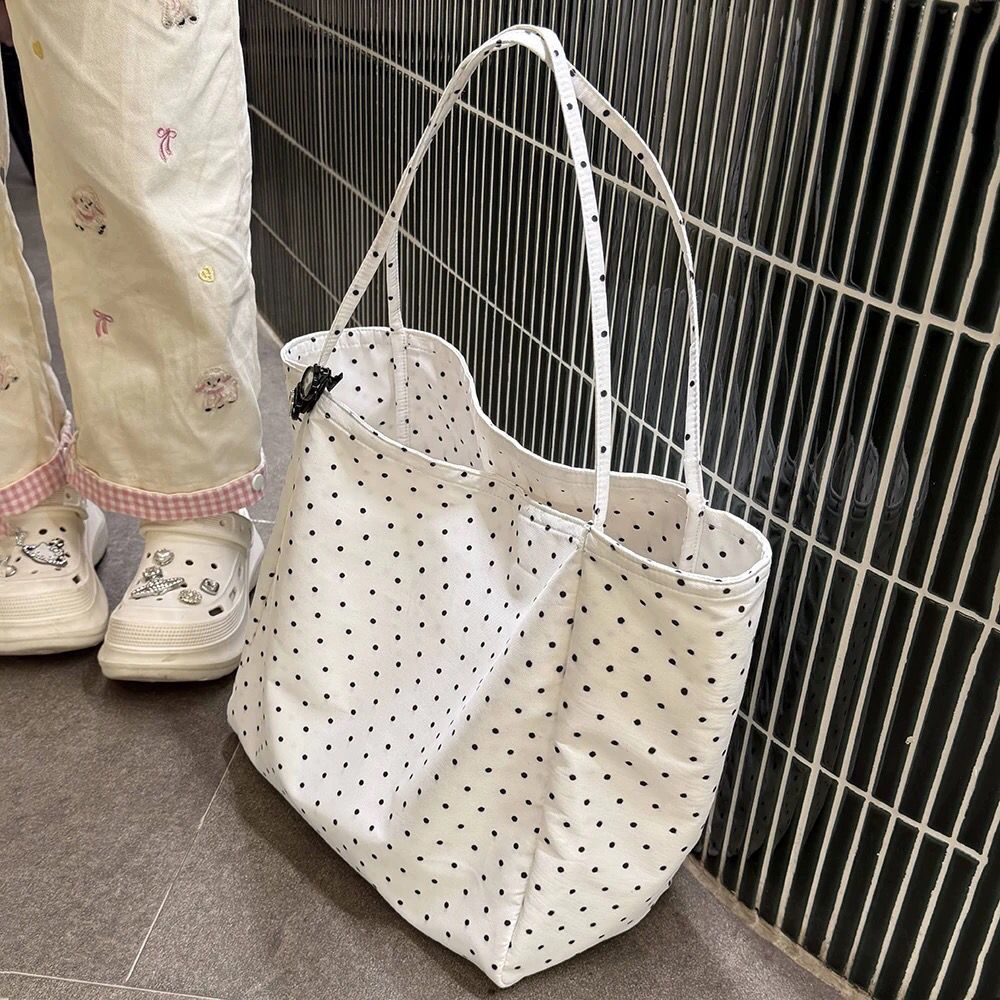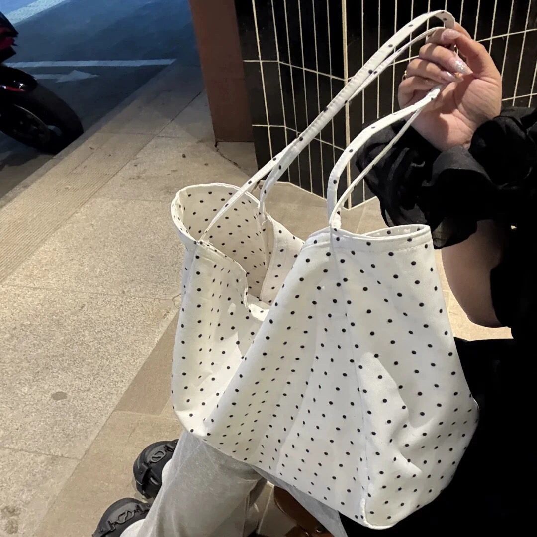 韩风简约波点帆布包包少女学生可爱百搭通勤包单肩通勤包外贸批发