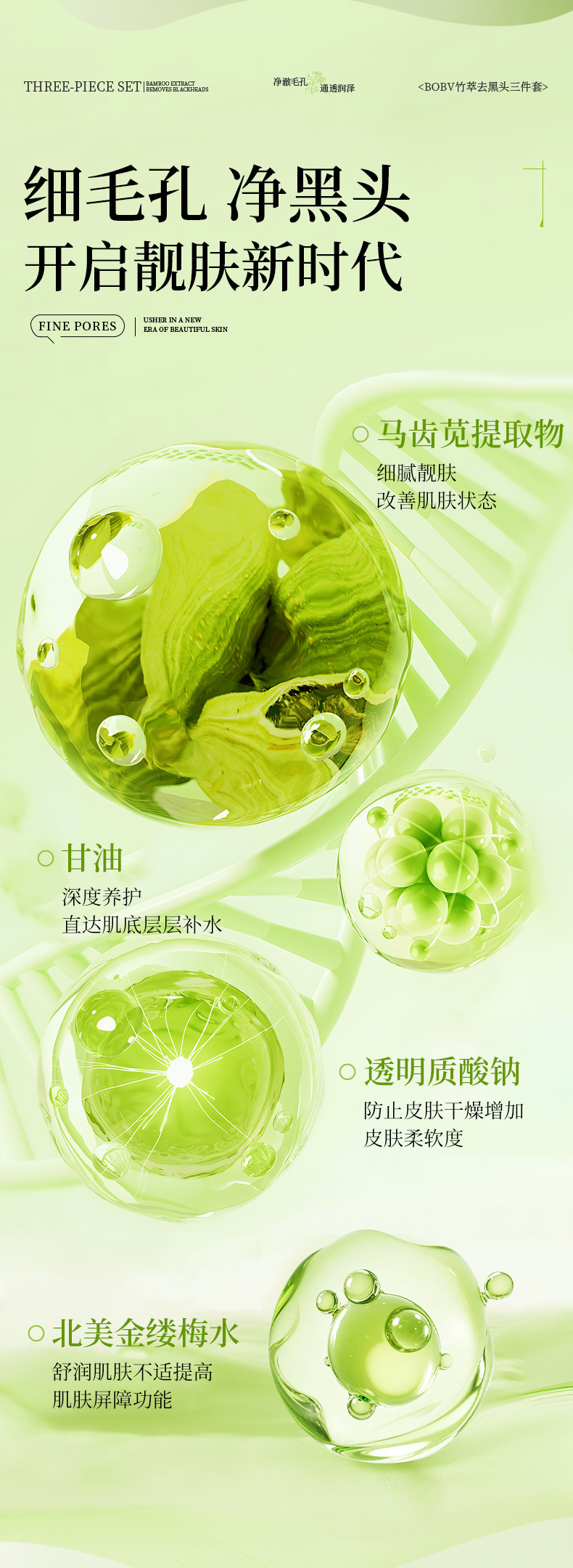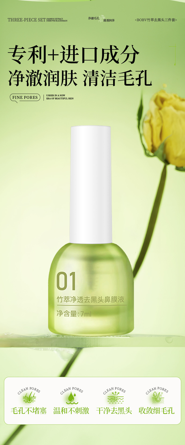BOBV竹萃去黑头三件套去黑头粉刺收缩毛孔深层清洁黑头导出液鼻贴