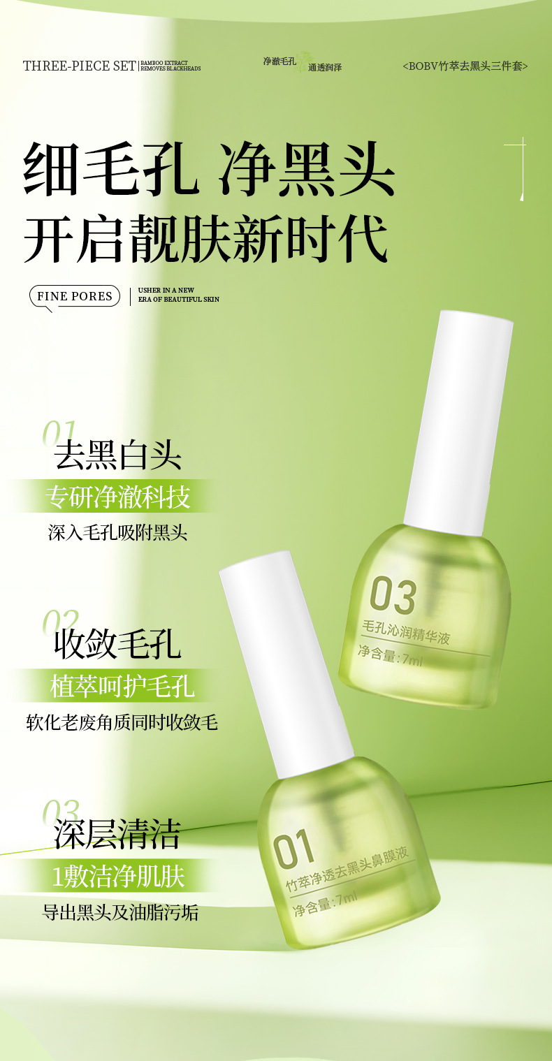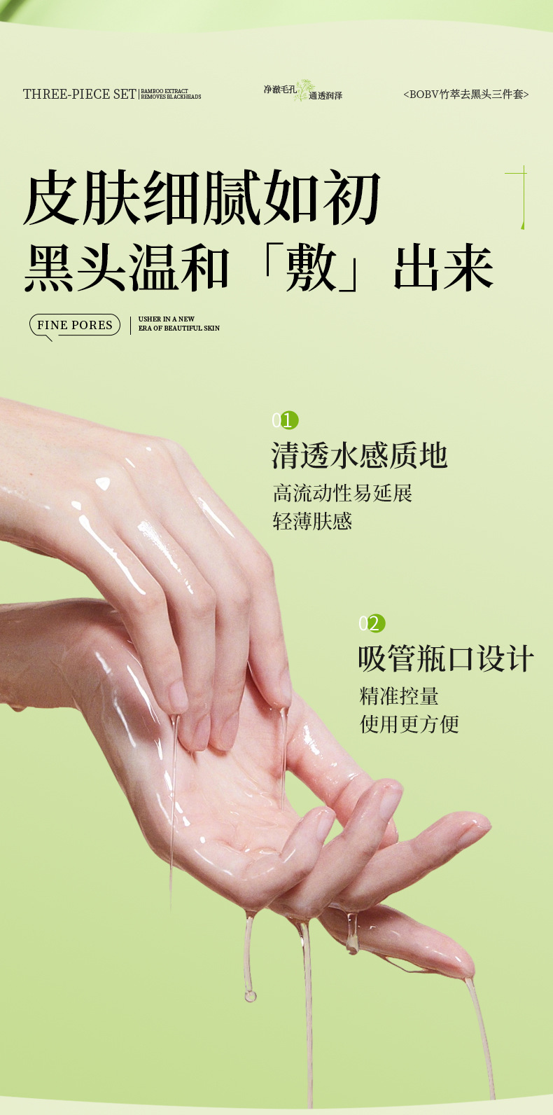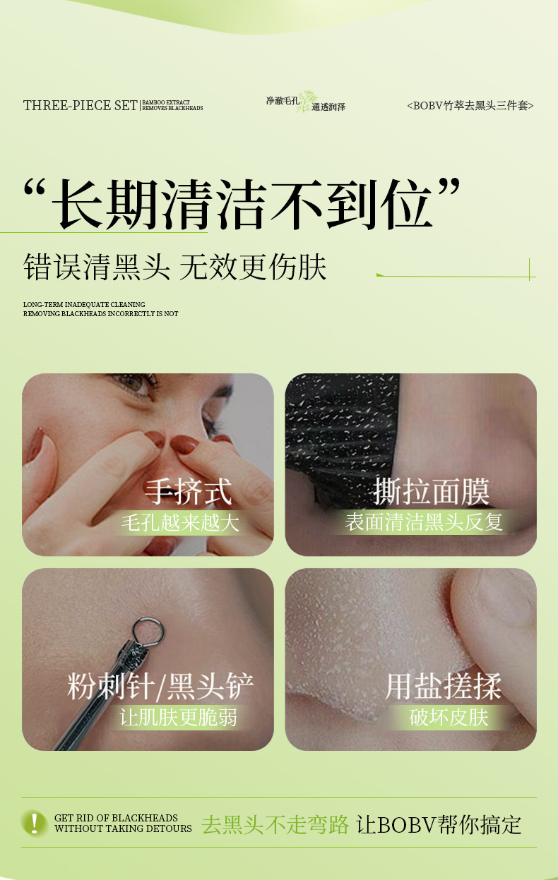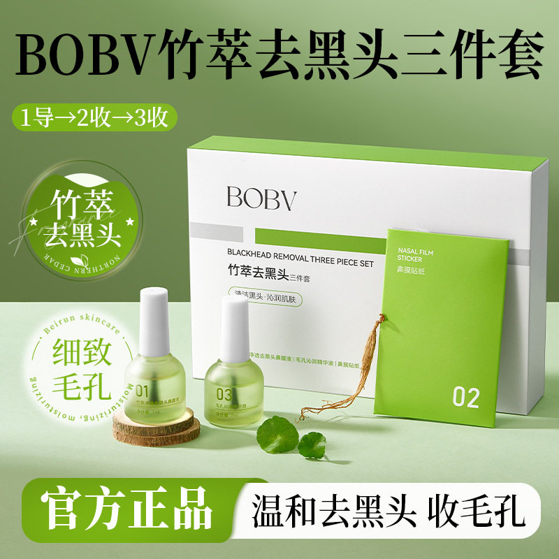 BOBV竹萃去黑头三件套清洁黑头白头收缩毛孔清爽不油腻黑头导出液