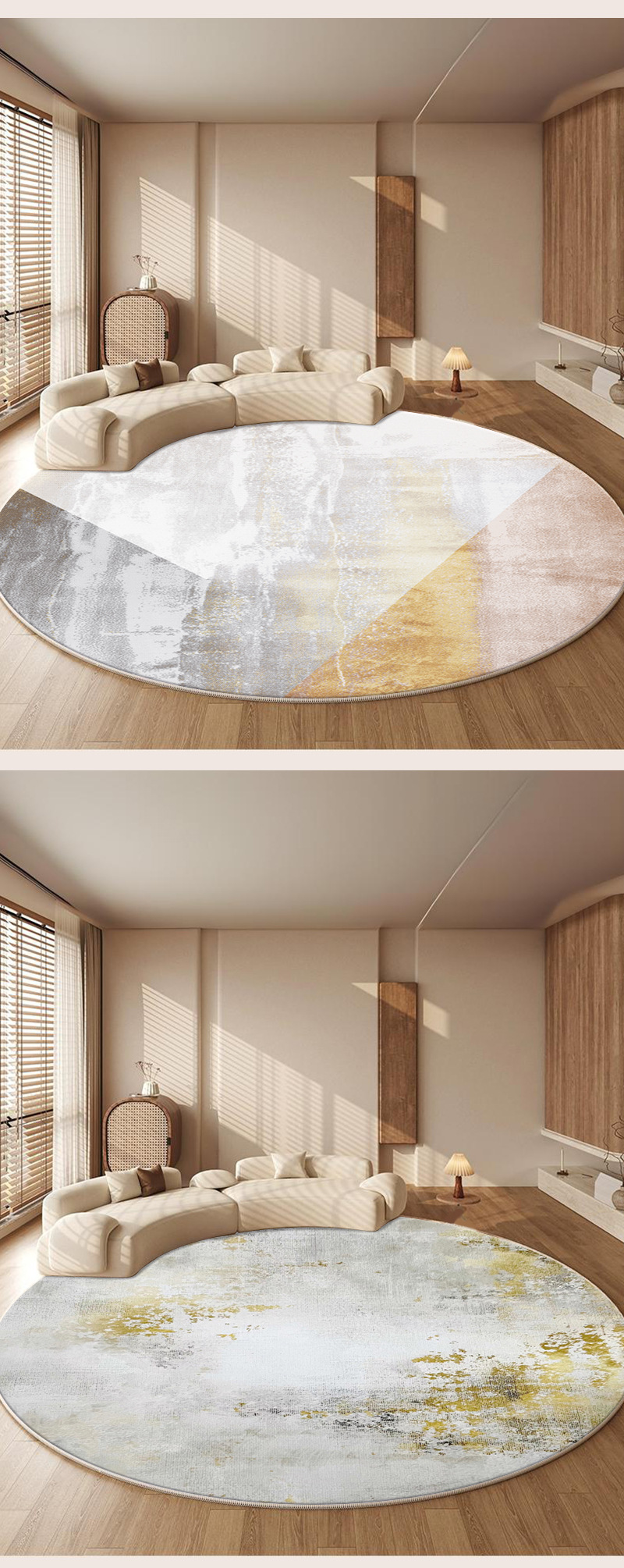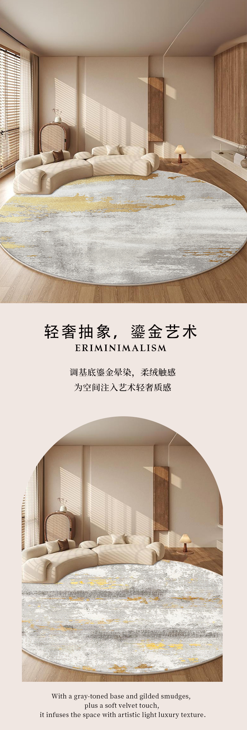 ラウンドカーペット、ハイエンドのリビングルームとベッドルーム、新しいベッドサイド、洗濯不要、拭き取り可能、お手入れ不要のルームソファ、軽くて豪華なフロアマット。