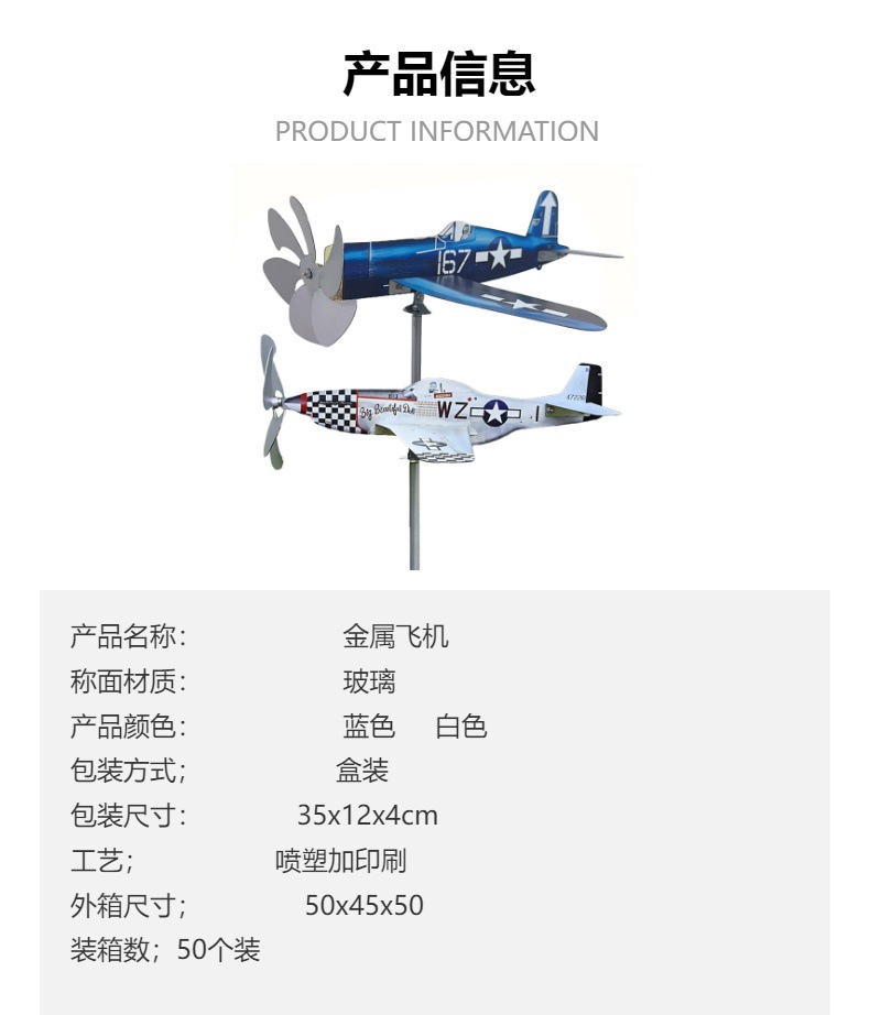 跨境亚马逊户外飞机风向标 Airplane Weathervane 金属飞机风车