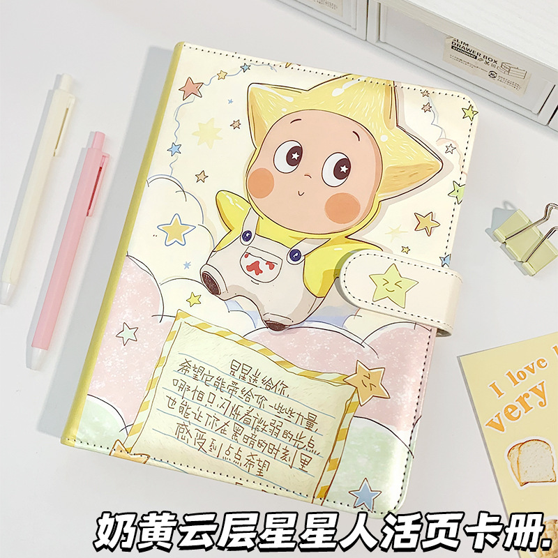 奶黄云层星星人a5潮玩周边卡册活页本收集册本可爱卡通磁扣笔记本