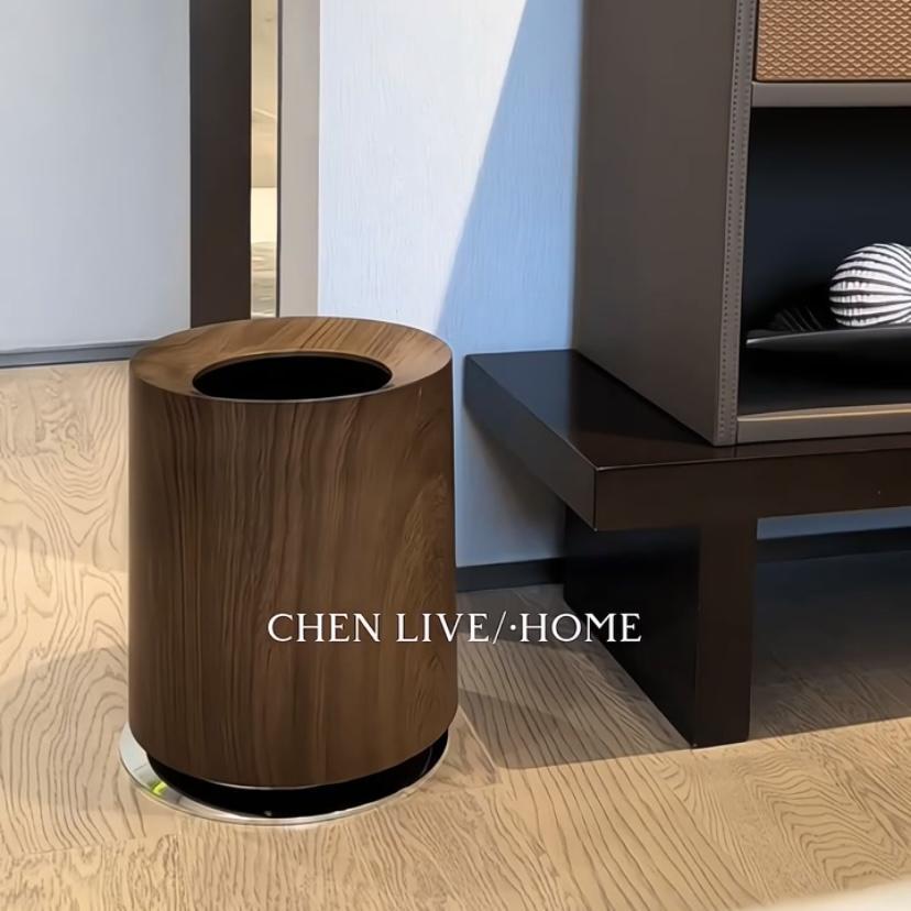 家庭用品 中世風ゴミ箱 家庭用 2025年新作 高級感 リビング 軽奢 木目調ペーパーバスケット トイレ