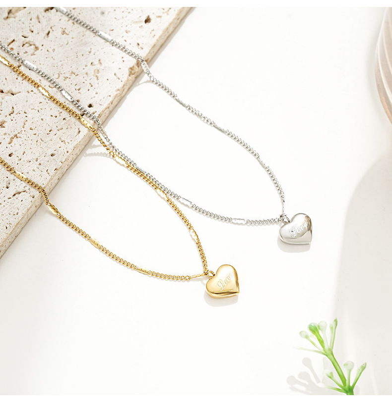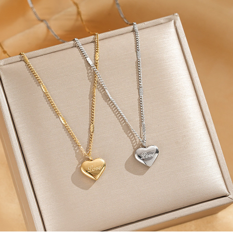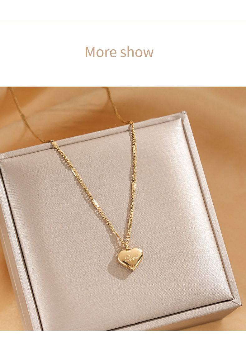 简约百搭不锈钢love爱心项链女时尚小众网红锁骨链真空电镀配饰品