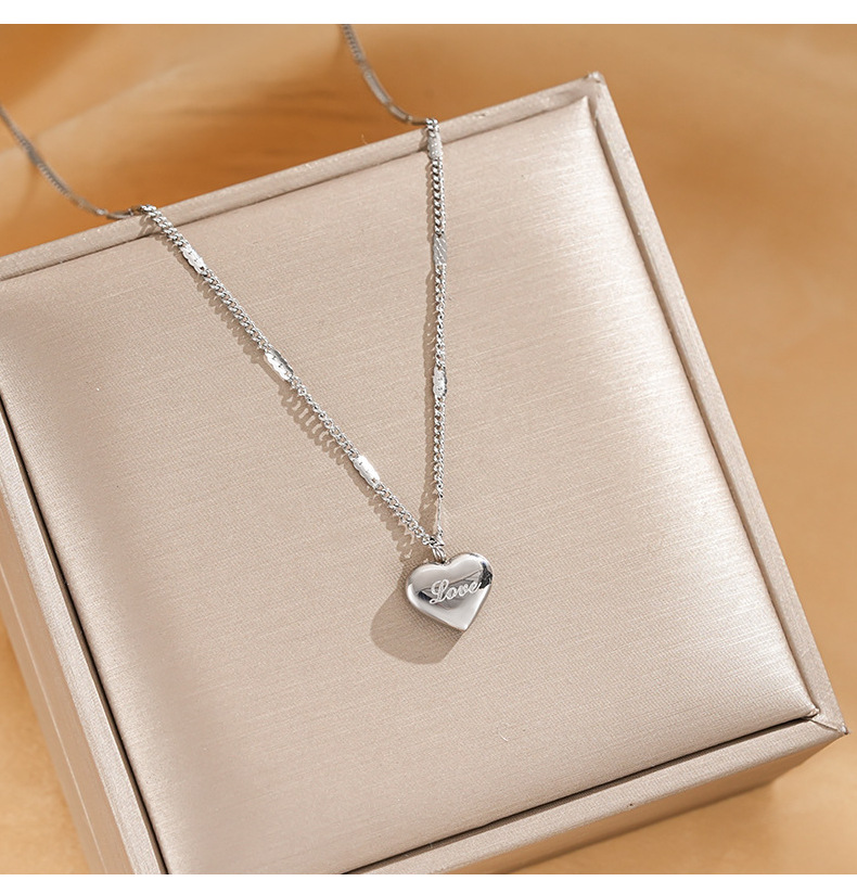 Love愛のネックレスの新型の女性の夏の鎖のシンプルな気質は色を落とさないチタン鋼の装飾品の軽い贅沢な首の鎖の桃の心