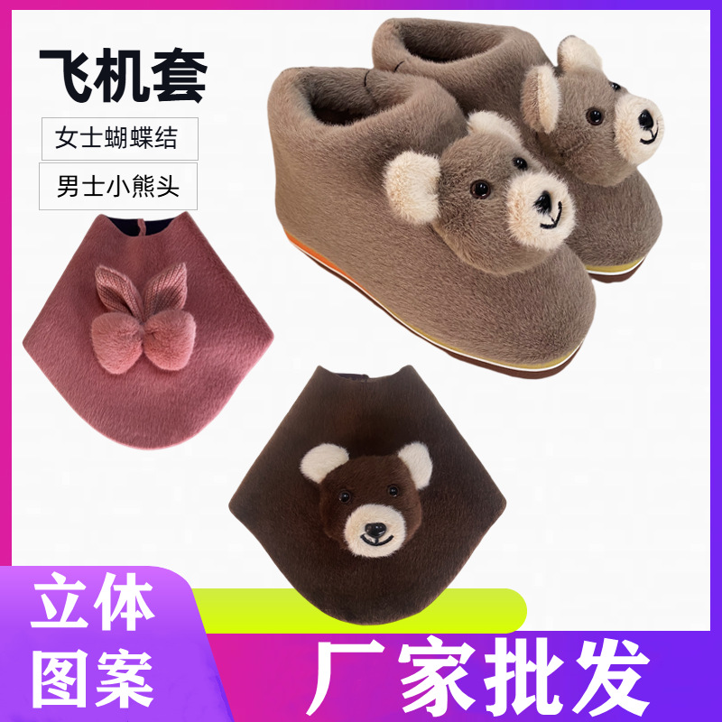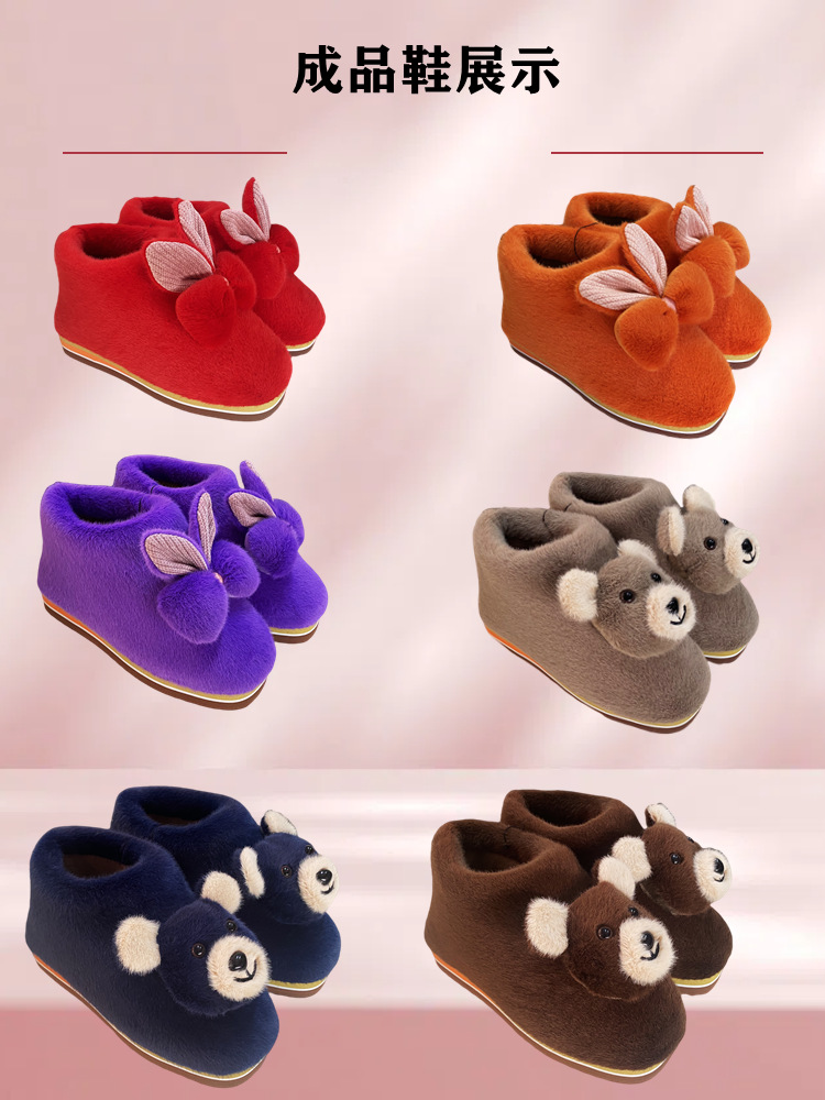 手工小熊头花加厚卡通可爱蝴蝶结飞机帮棉鞋面鞋帮鞋面套布套批发