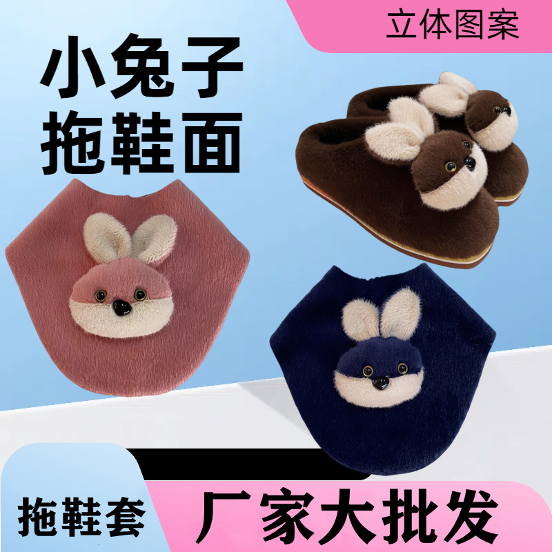 手工小兔子贴花半跟加厚卡通可爱自己做拖鞋鞋面鞋帮鞋套布套批发