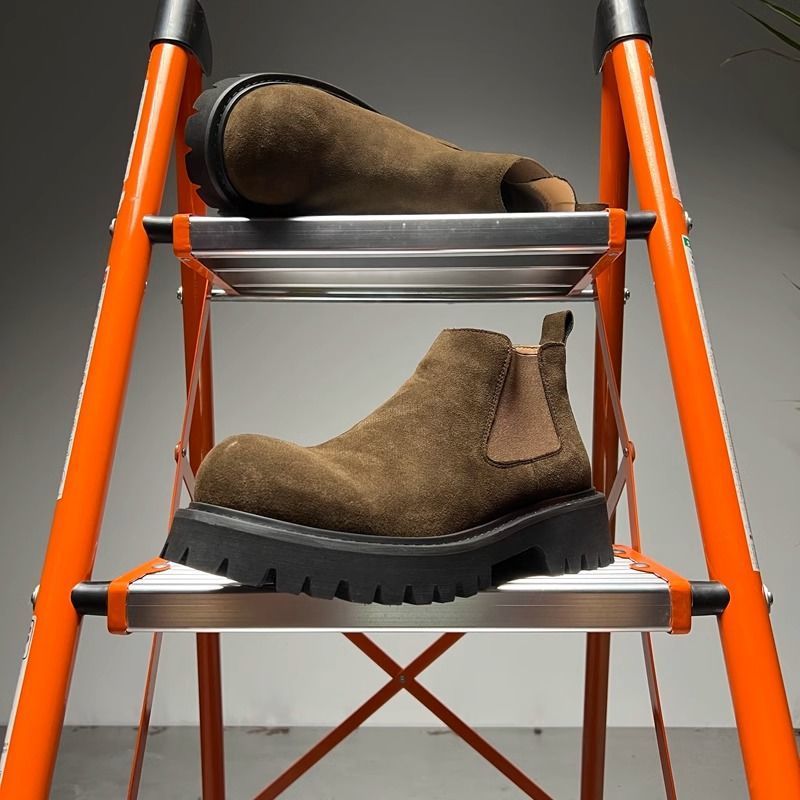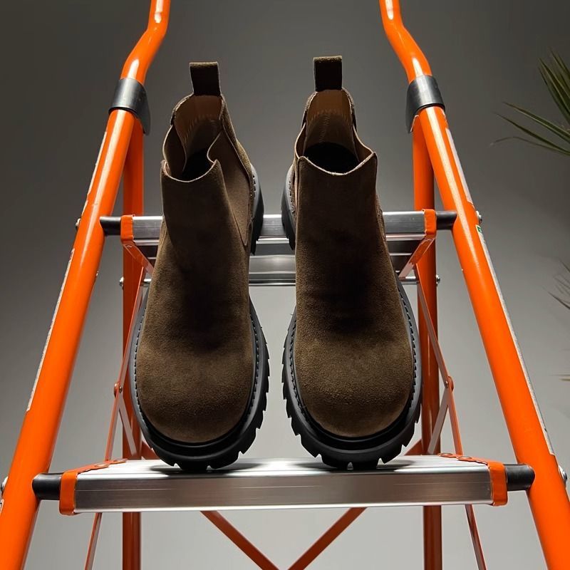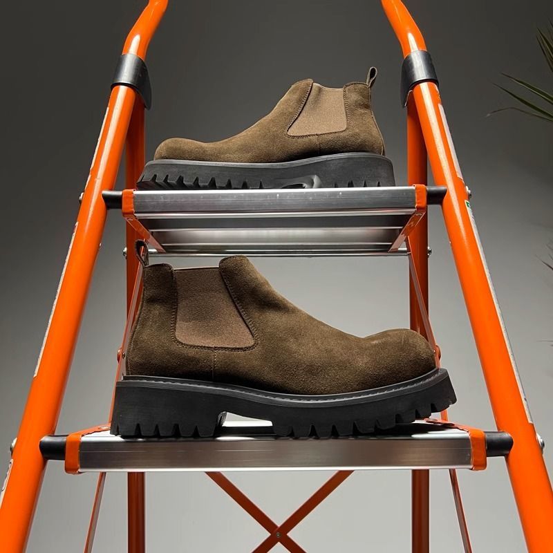 マーティンブーツの男性の厚い底の秋の新型の中で柔らかい皮のショートブーツのファッションの潮流の機関車の中で高くなるチェルシーの靴