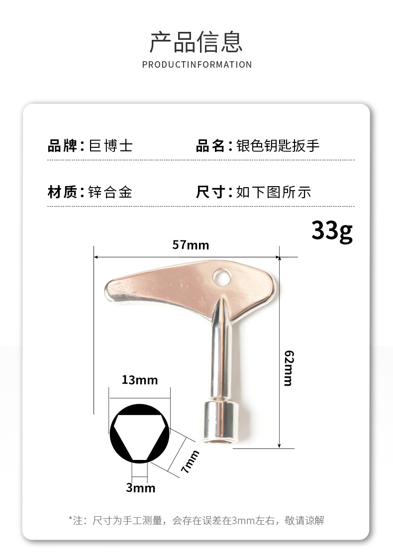 跨境电控柜车电梯十字钥匙扳手水表阀门钥匙单个内三角扳手四合一