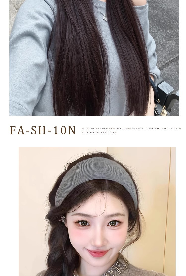 发箍假发一体女高颅顶仿真发灰色宽边针织发箍半头套长直发全头套