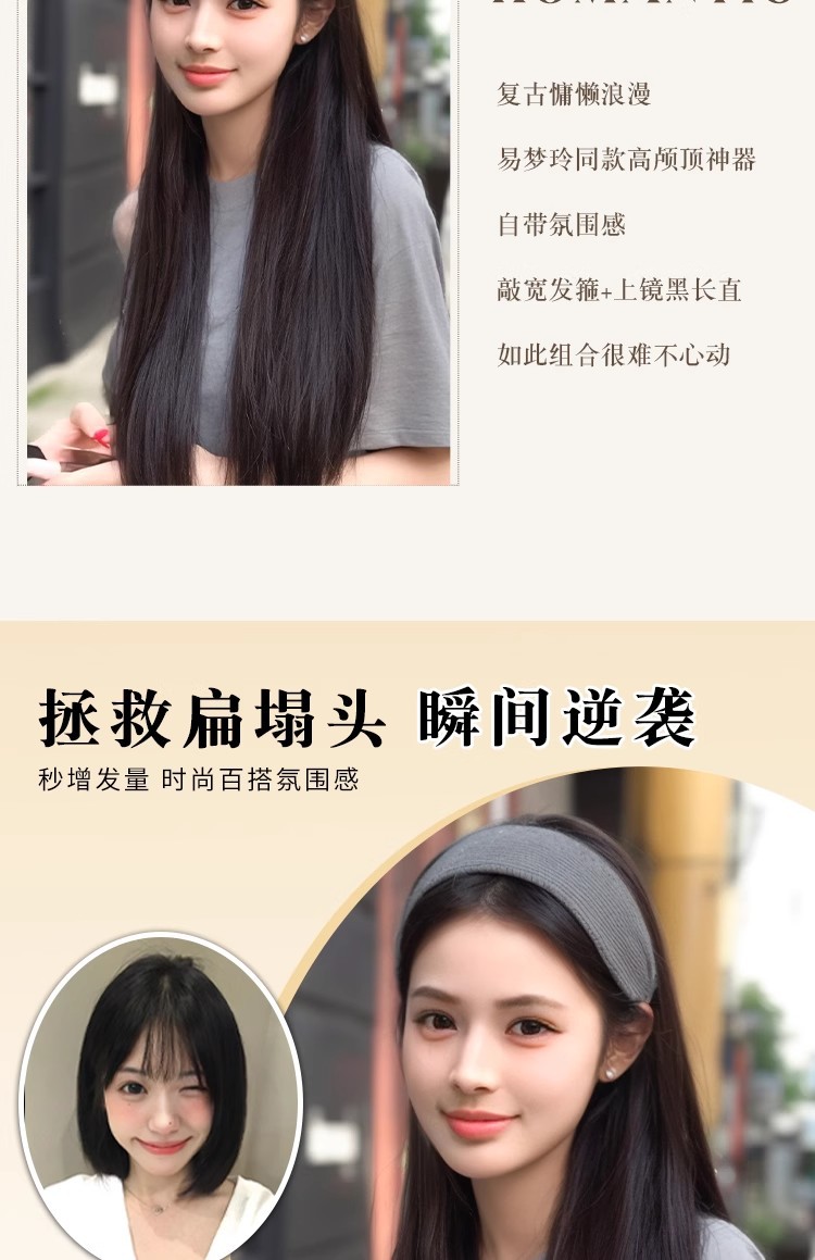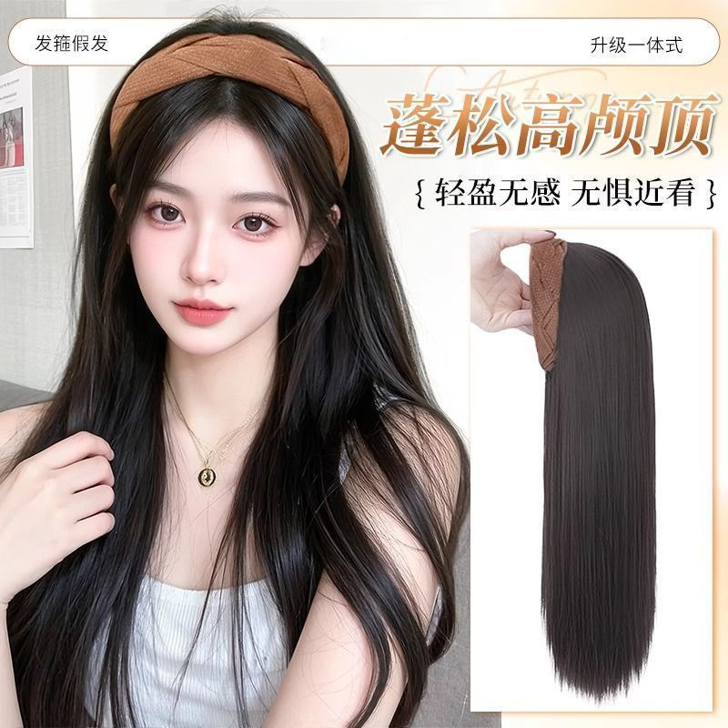 发箍假发一体女长直发韩系自然增高颅顶仿真发假发发箍全头套