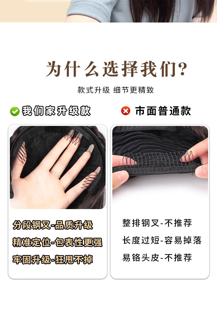 女性用ウィッグ、ミニヘアクリップ、ヘアパック、人工毛、ふわふわナチュラルヘアスタイラー、後頭部ウィッグパック