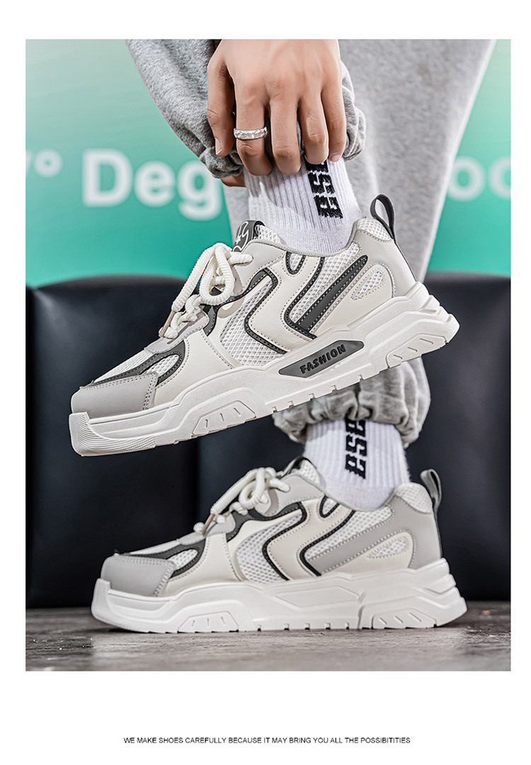 秋の新型の通気性の白い靴の男性の韓国版の潮流は厚い底の運動靴のカジュアルなランニングのお父さんの靴の男性に似合います。