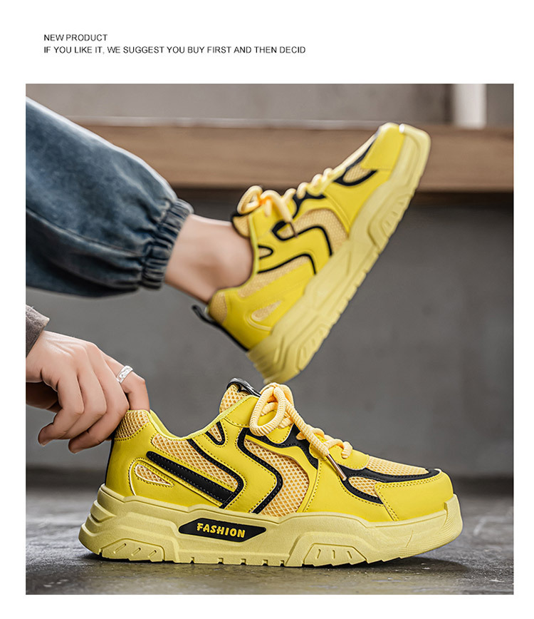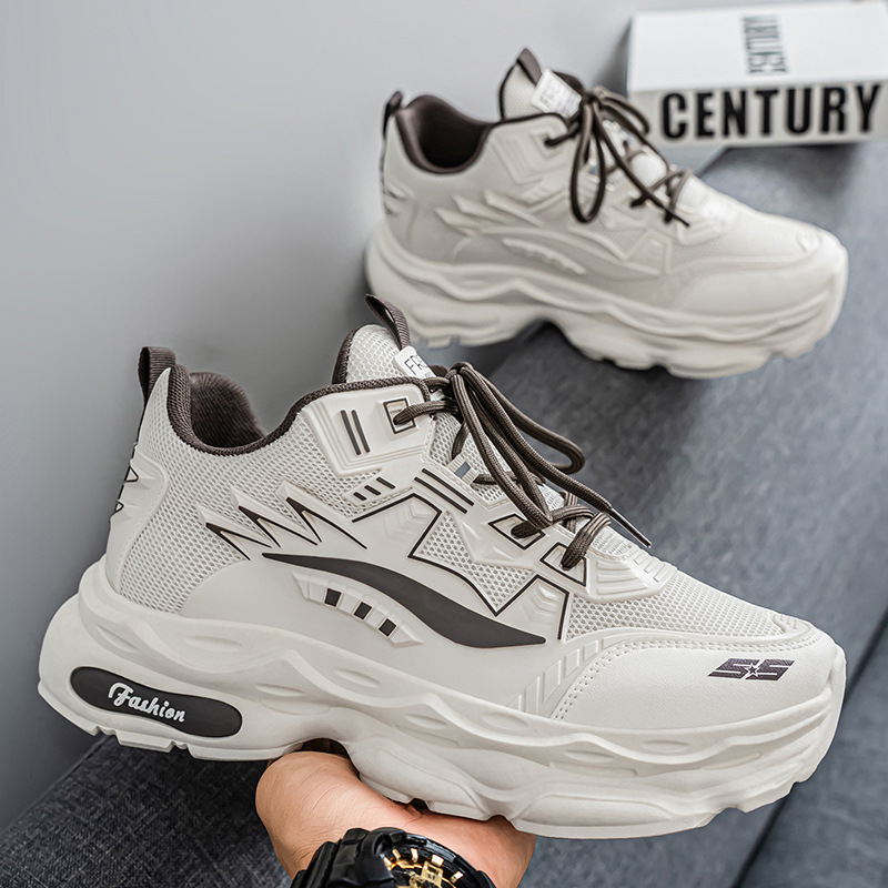 春の男の靴2025の新型の通気性の靴の男の潮流は厚い底の運動靴のカジュアルなランニングのお父さんの靴の男に似合います。