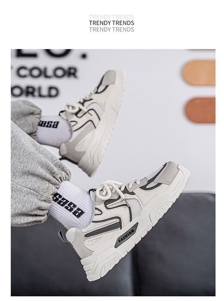 秋季男鞋新款透气网面小白鞋潮流百搭厚底运动鞋休闲板鞋老爹潮鞋