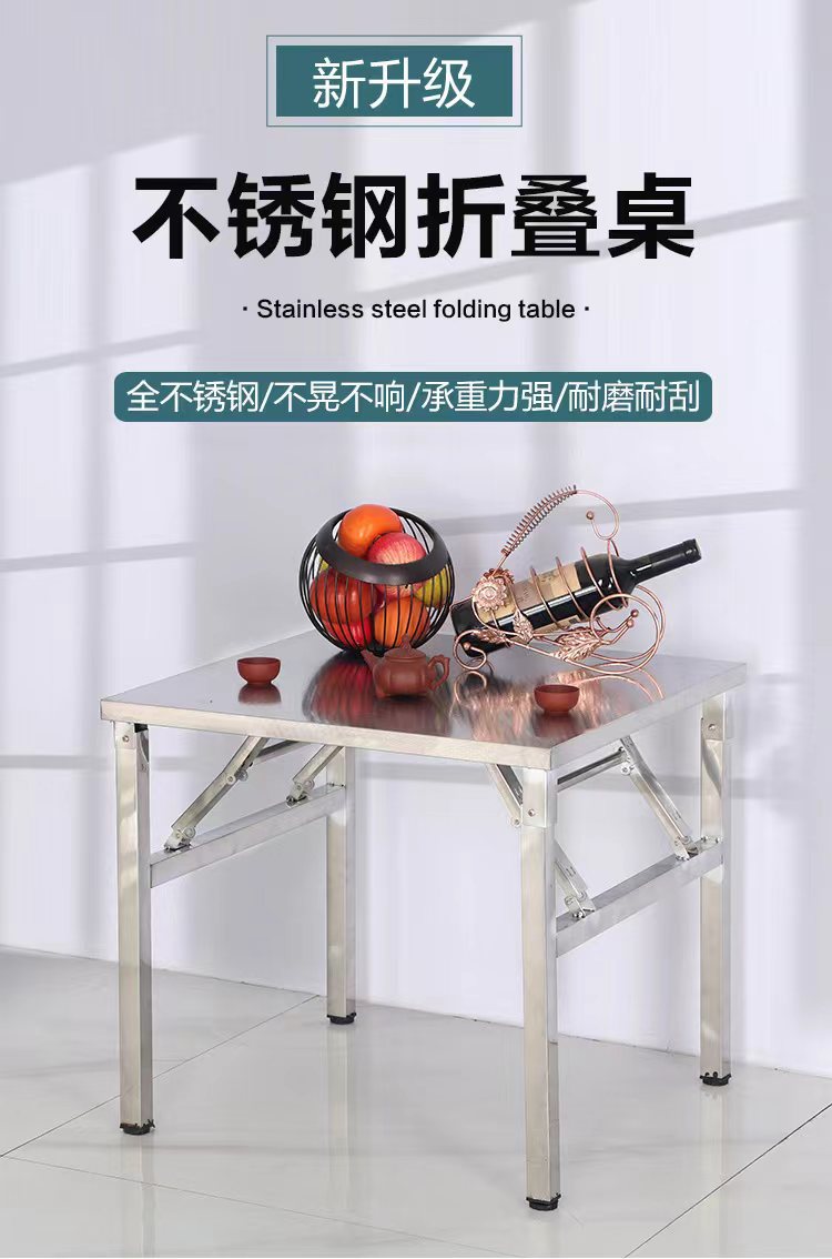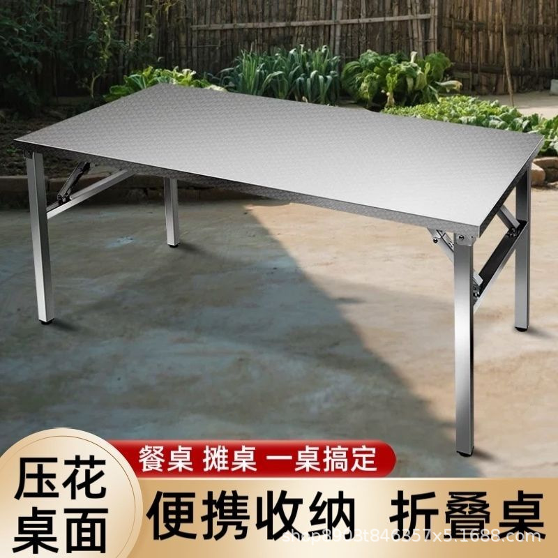 加厚不锈钢折叠桌户外烧烤夜市摆摊桌子家用长方形餐桌商用工作台