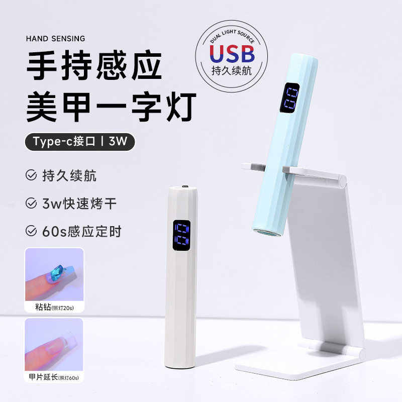 手持美甲一字灯蓄电款迷你便携光疗机速干美甲烤灯美甲店专用照灯
