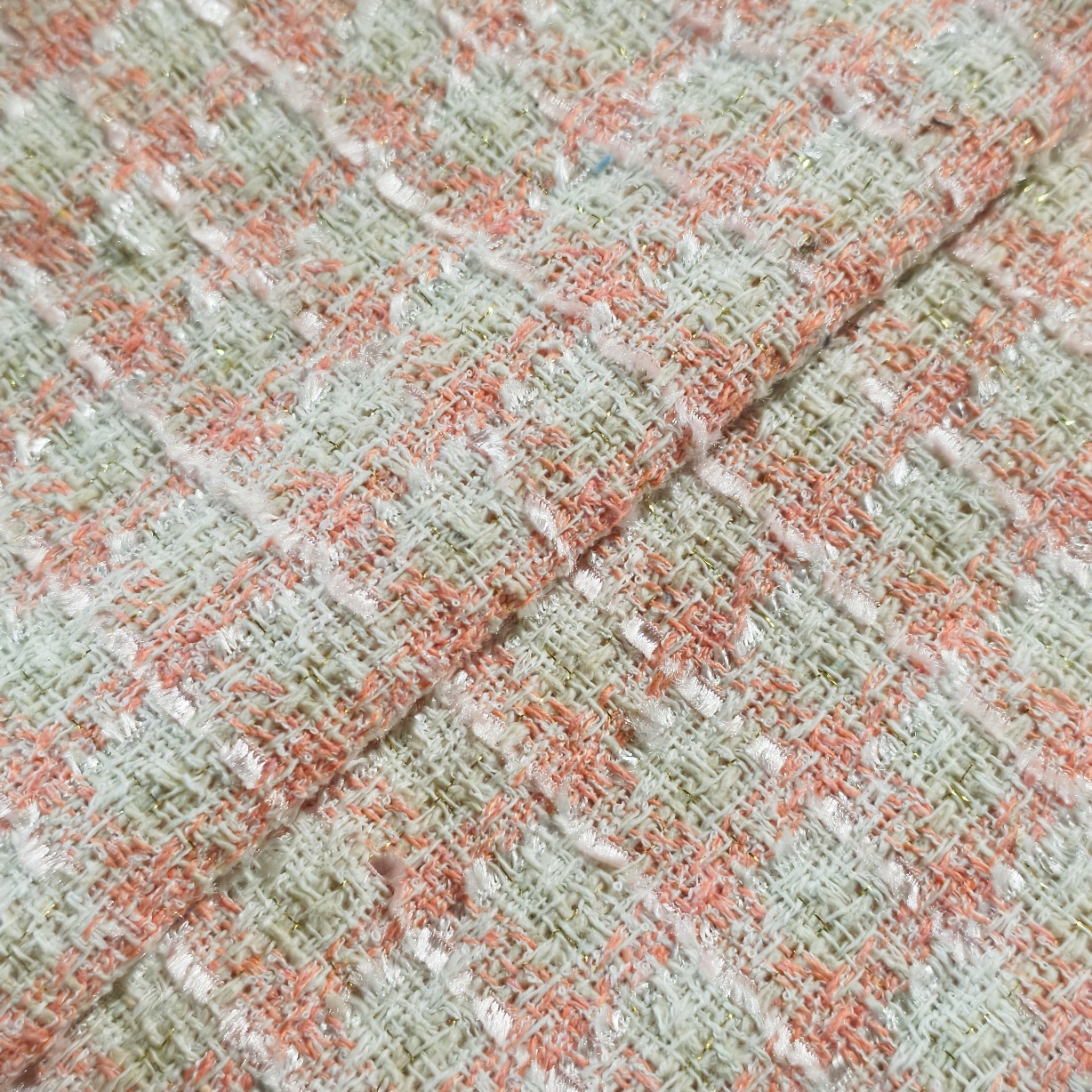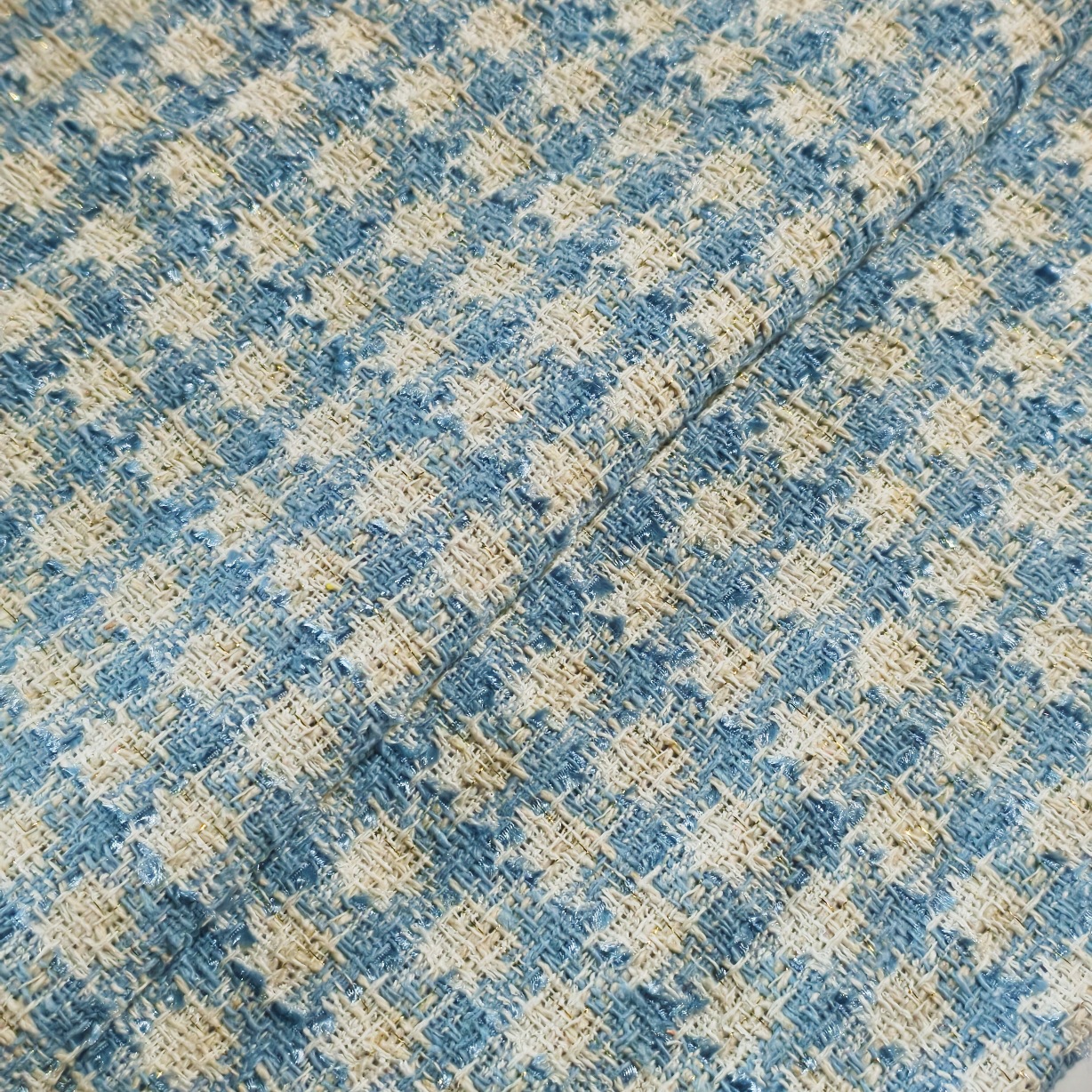 粗花小香風チェック柄光沢ビーズ生地 女児服ジャケットワンピースバッグ生地粗毛織物