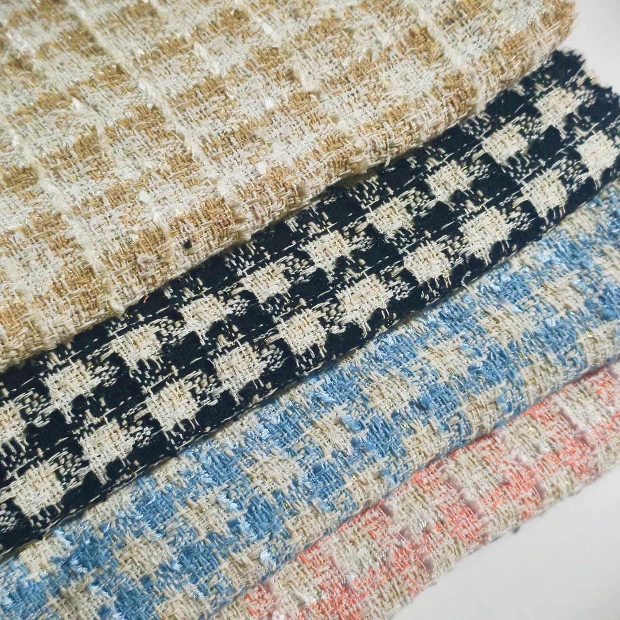 小香風ウール生地、ツイード素材、旗袍生地、金糸格子粗織婦人服、バッグ用ウール生地、日韓風