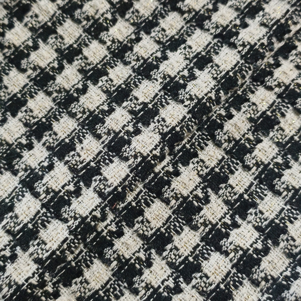 粗紡小香風亮糸白黒格子生地ファッション婦人服コートバッグ生地粗花織り生地