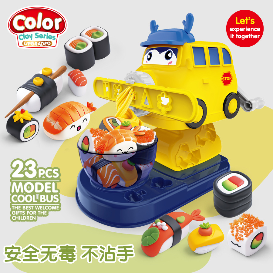 機械式粘土スクールバス麺機恐竜おもちゃ幼稚園児ごっこ遊び粘土型セットモデル