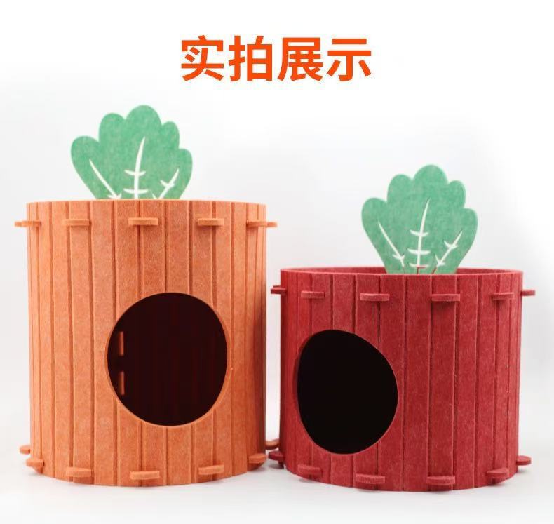 跨境新款毛毡胡萝卜猫窝隧道耐磨半封闭式毛毡宠物窝四季通用立体