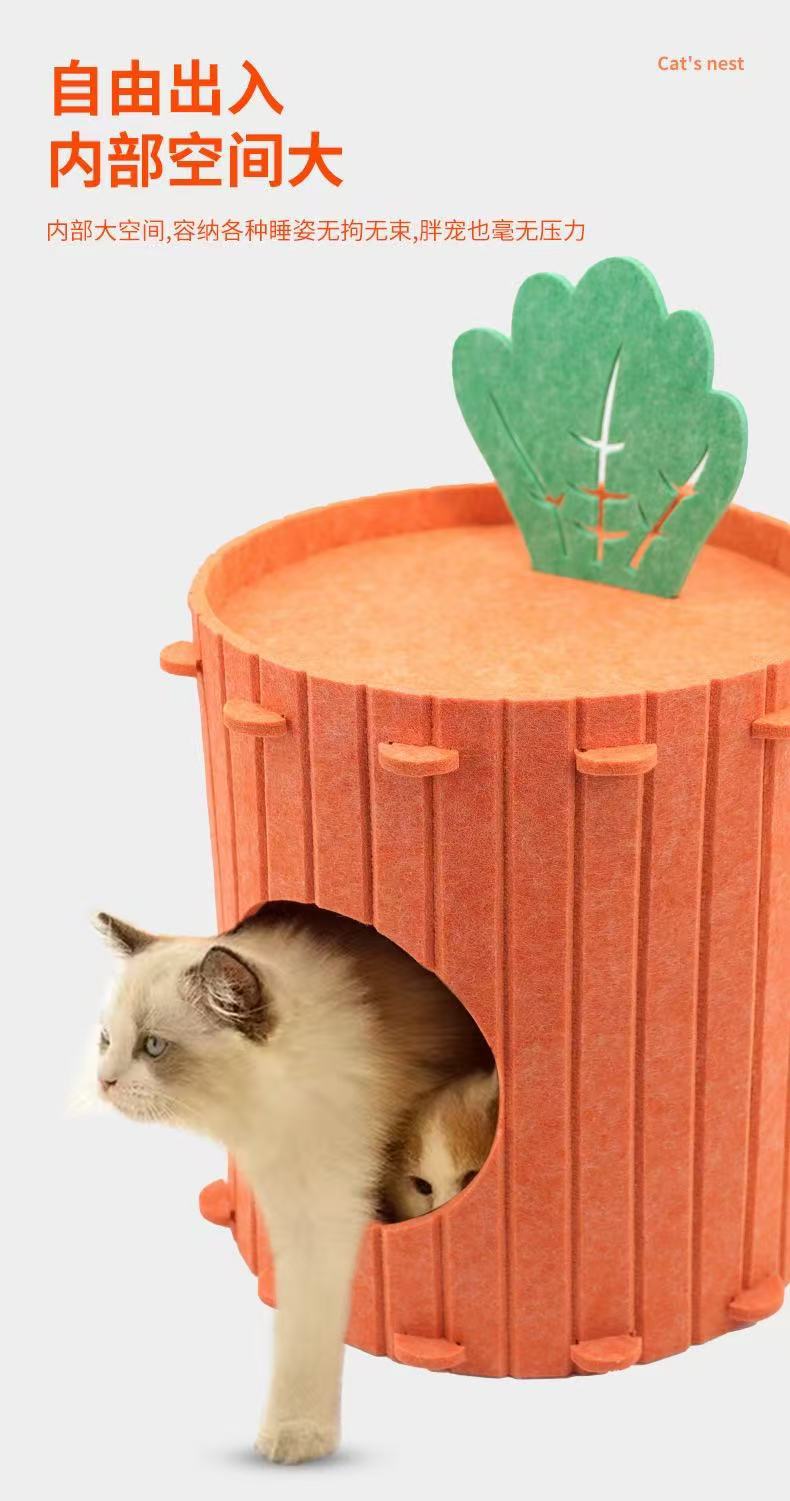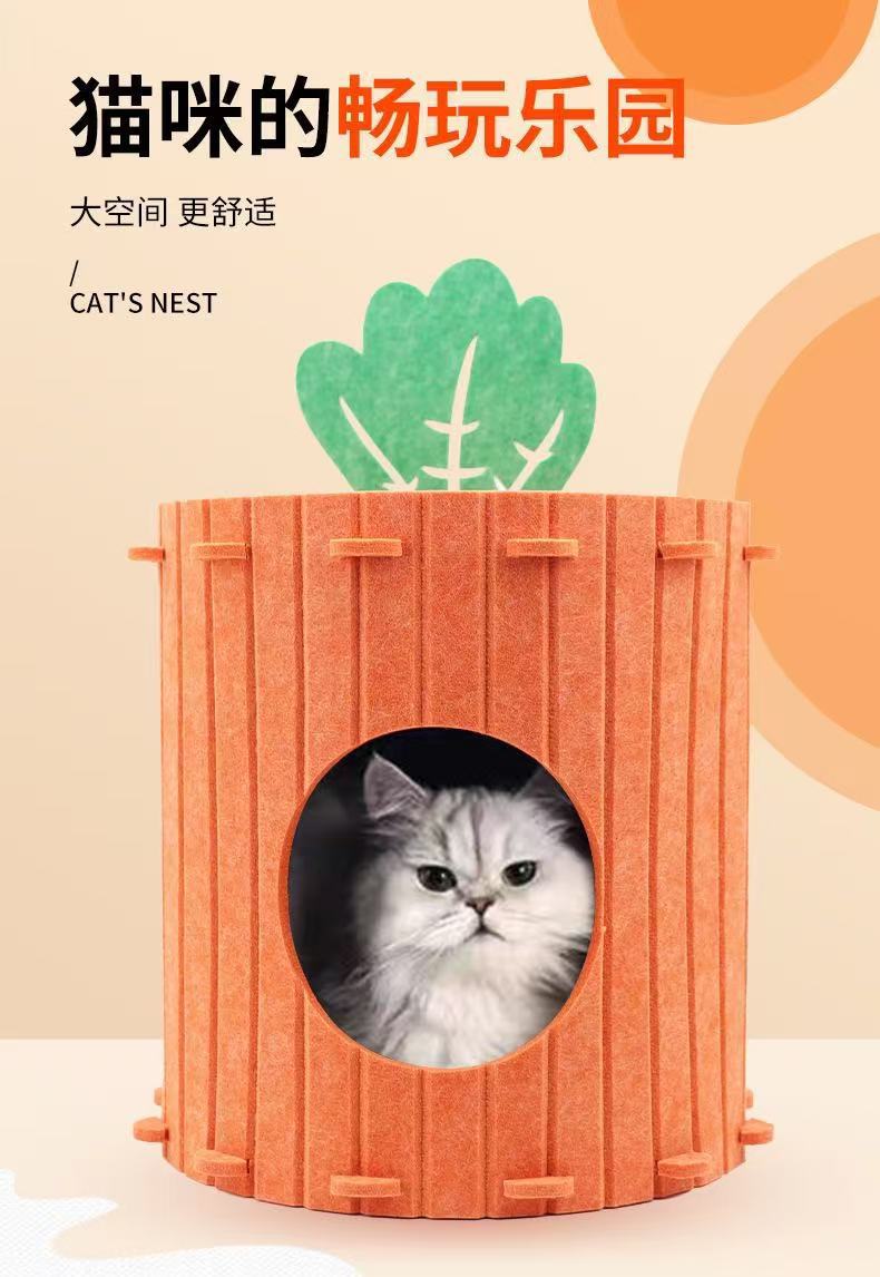 跨境爆款胡萝卜猫窝毛毡猫窝四季通用耐磨猫抓板玩睡一体宠物窝