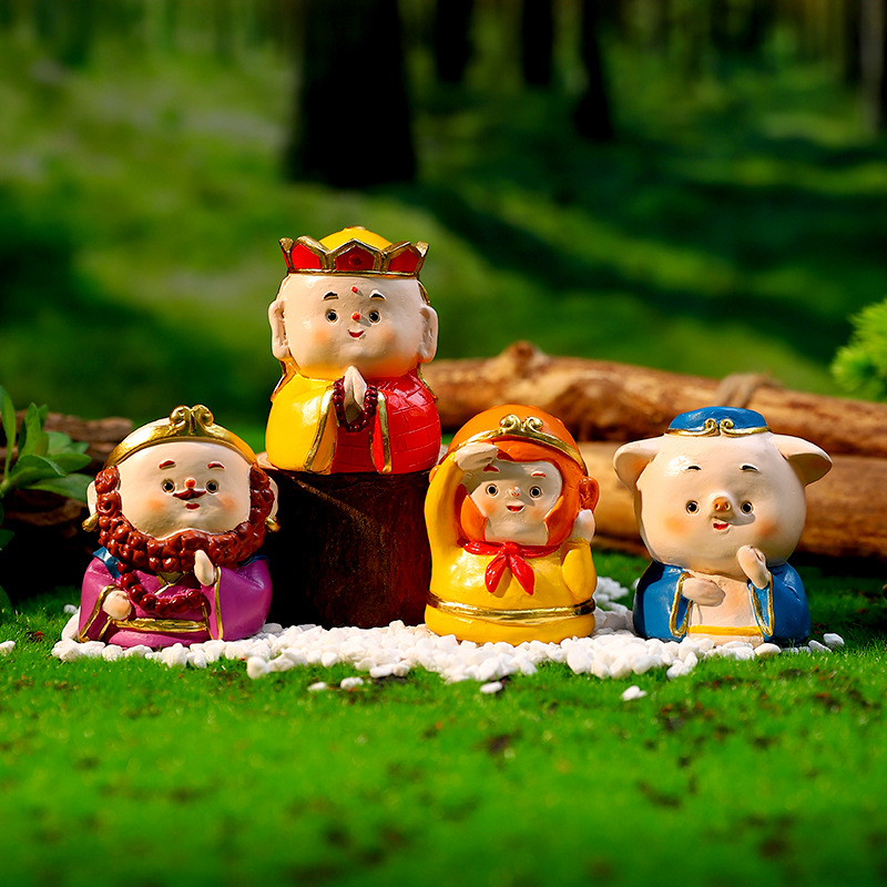 創意漫画ミニ西遊記師弟四人の人物樹脂置物子供誕生日モデルデスクトップ装飾品