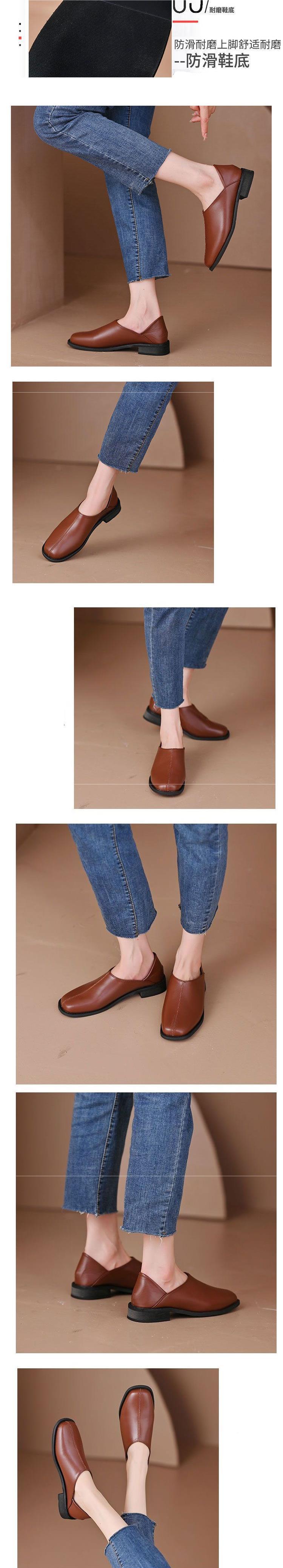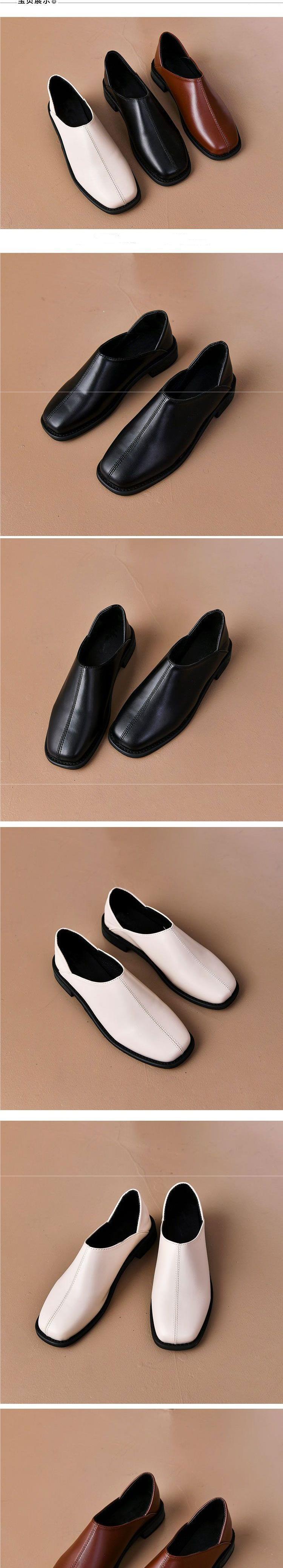 粗跟方头低跟两穿法式方头单鞋单鞋女首尔2025春复古通勤风小皮鞋
