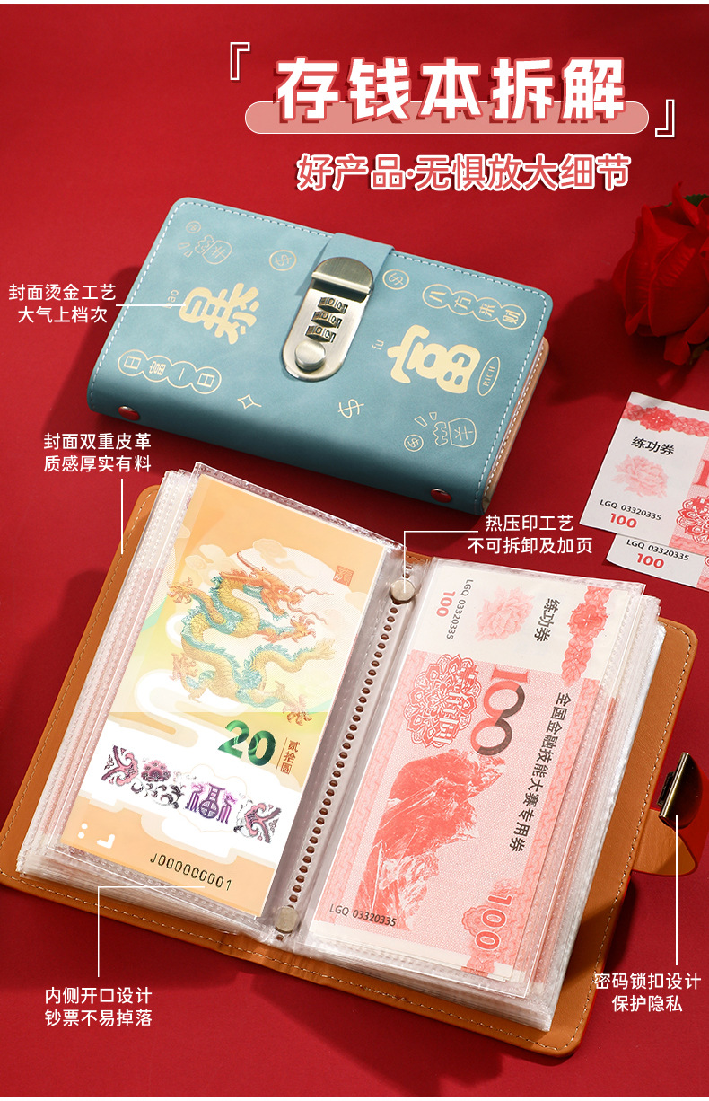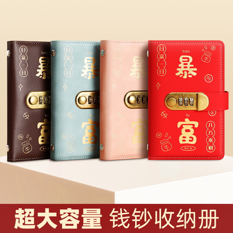 暴富现金存钱本密码锁存钱夹钱册存钱本记账本钱包大容量现金收纳