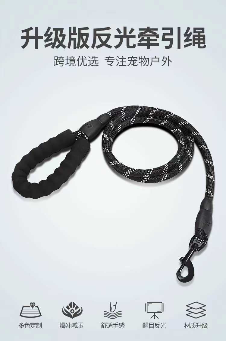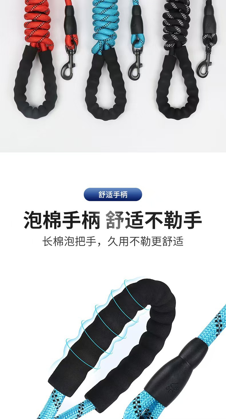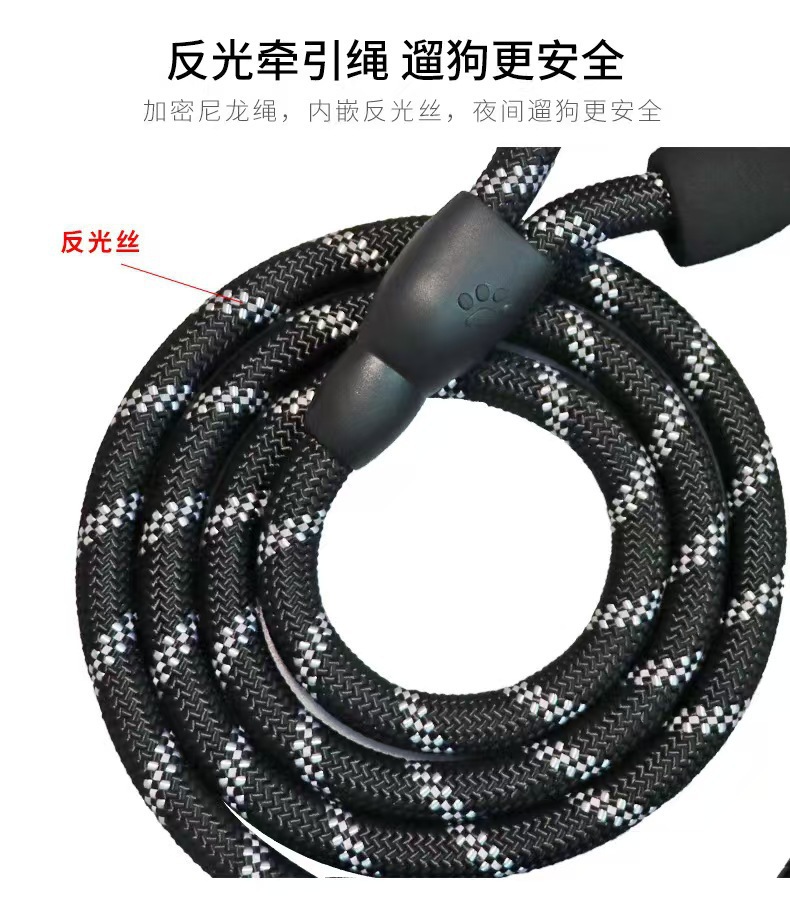 ペット用品反射牽引ロープ多色ナイロン丸紐大中型防爆冲犬紐泡綿ハンドル牽引ベルト