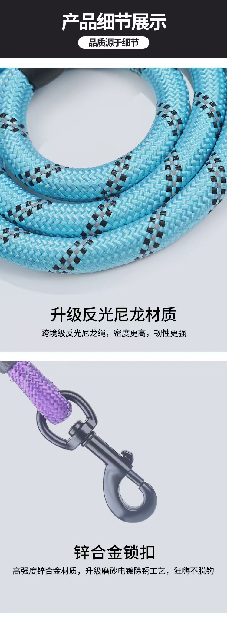 亚马逊跨境狗狗牵引绳户外发光遛狗绳防爆冲耐磨尼龙狗绳批发夜光