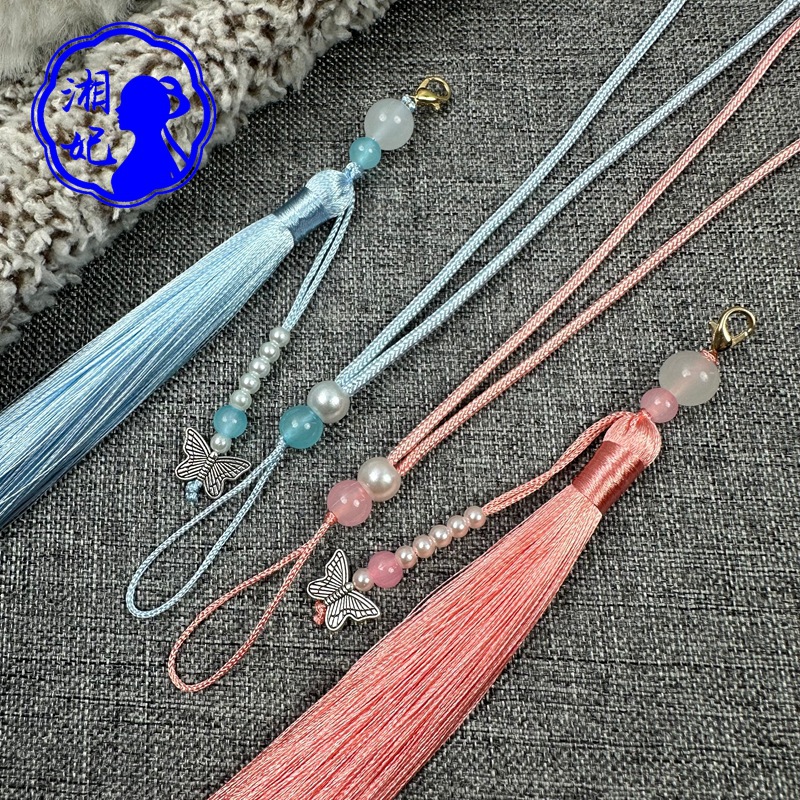 忆湘妃15B-11双串珠龙虾扣+15B-2串珠把绳套装15cm穗子亚克力吊坠