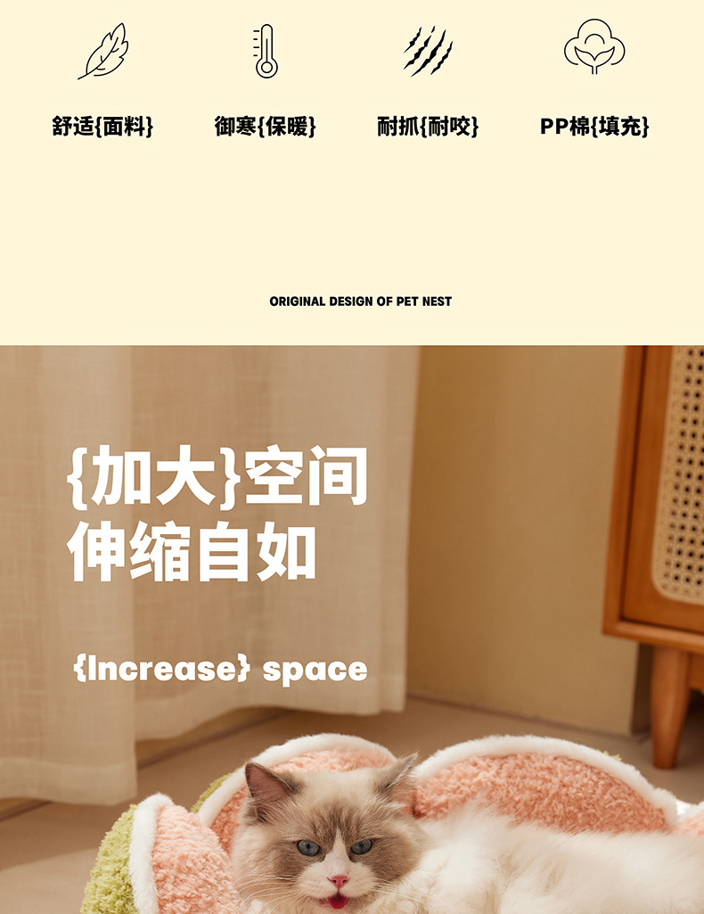秋冬猫窝狗窝猫床仙人掌睡垫猫咪圆窝加厚保暖猫睡袋宠物窝猫房子