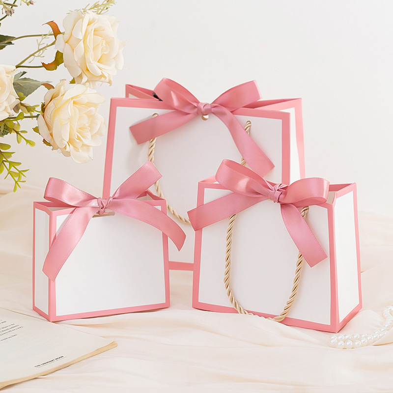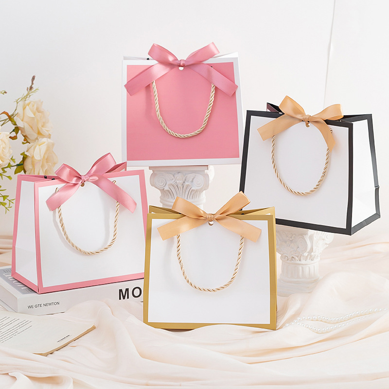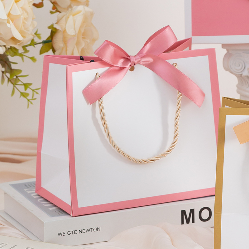 蝶結びギフトバッグ紙袋服装包装袋卸売り化粧品袋レジ袋手提げ袋はロゴを印刷できる